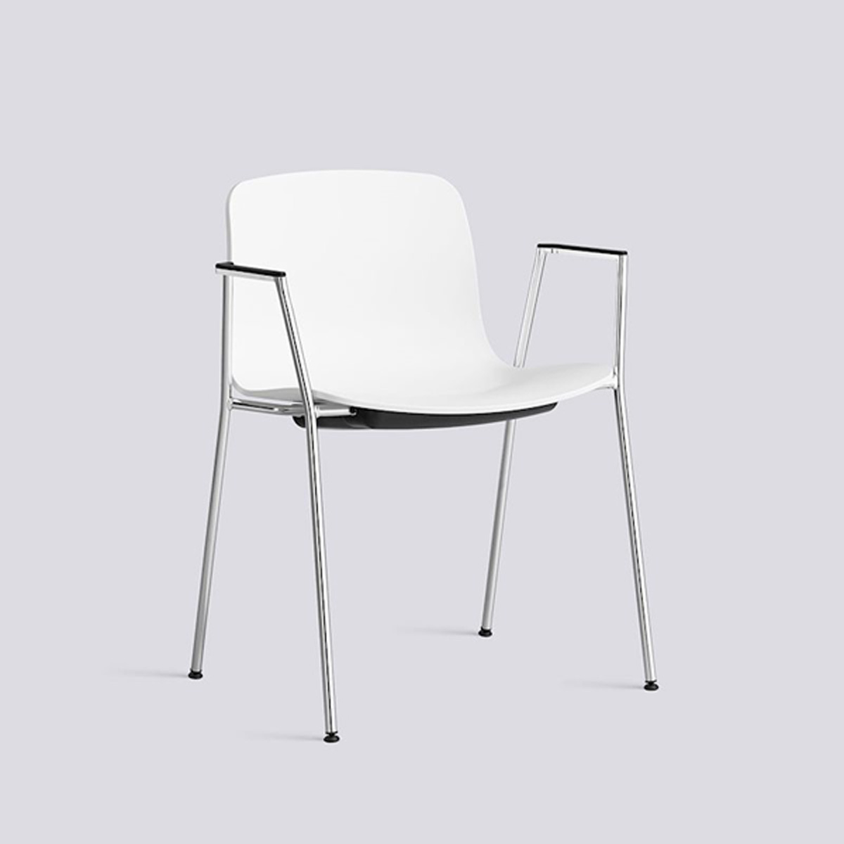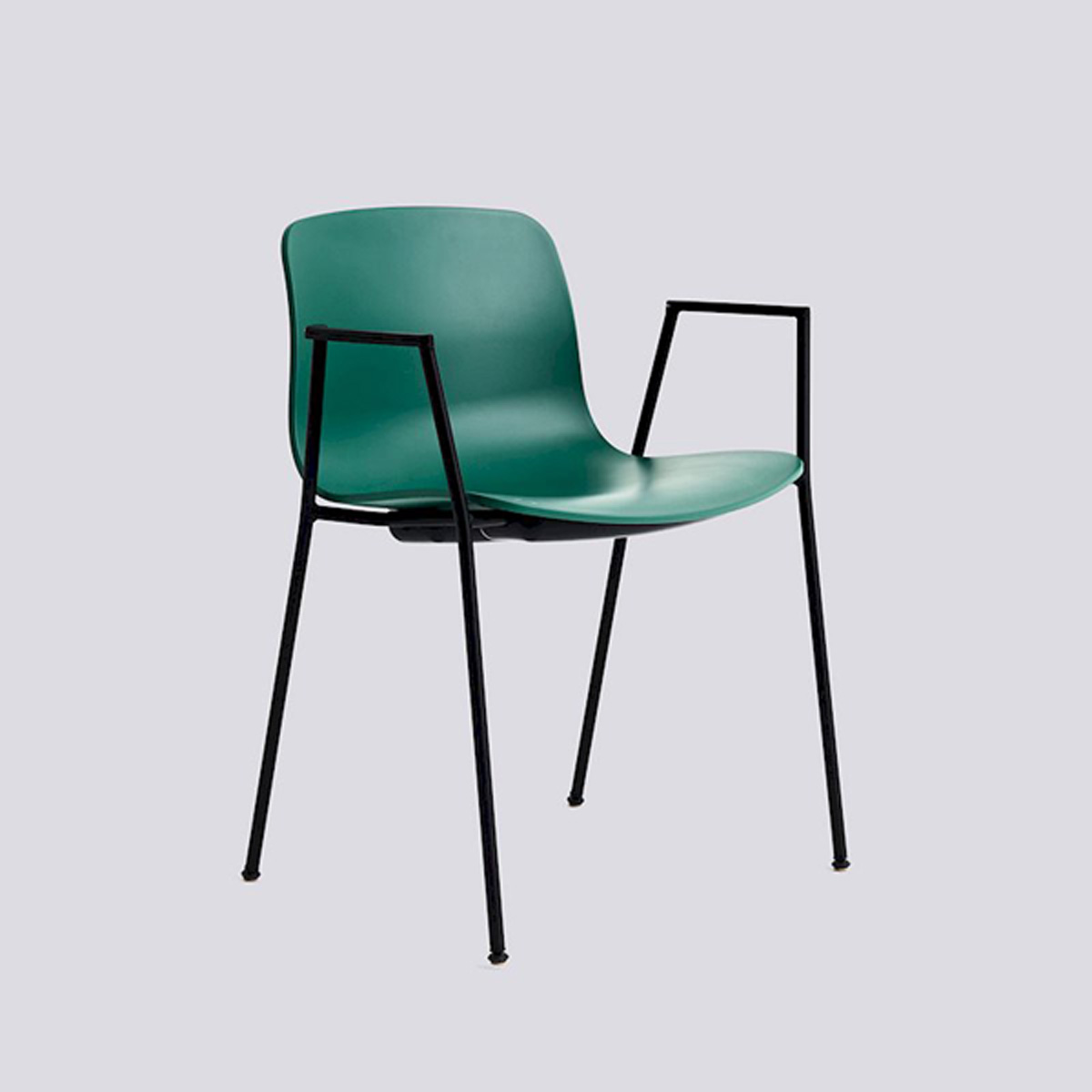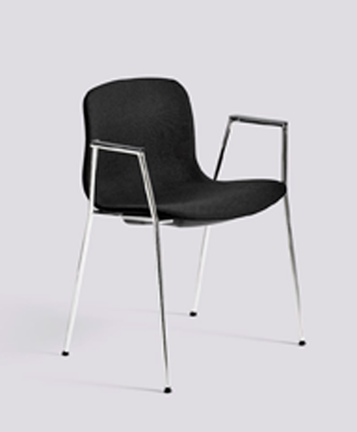 Offering a slightly more formal expression than other designs in the collection, About A Chair AAC 18 features slim, elegant legs and armrests that frame the seat shell. The chair’s upright, slightly rounded seat offers excellent comfort, while the open front conveys a welcoming expression. The legs are available in chrome and powder coated finishes, with the post-consumer recycled plastic shell offered in a wide palette of contemporary colours and multiple front upholstery options. Its refined silhouette and multitude of design combinations make it ideal for using in conferences, dining rooms, or home office environments.