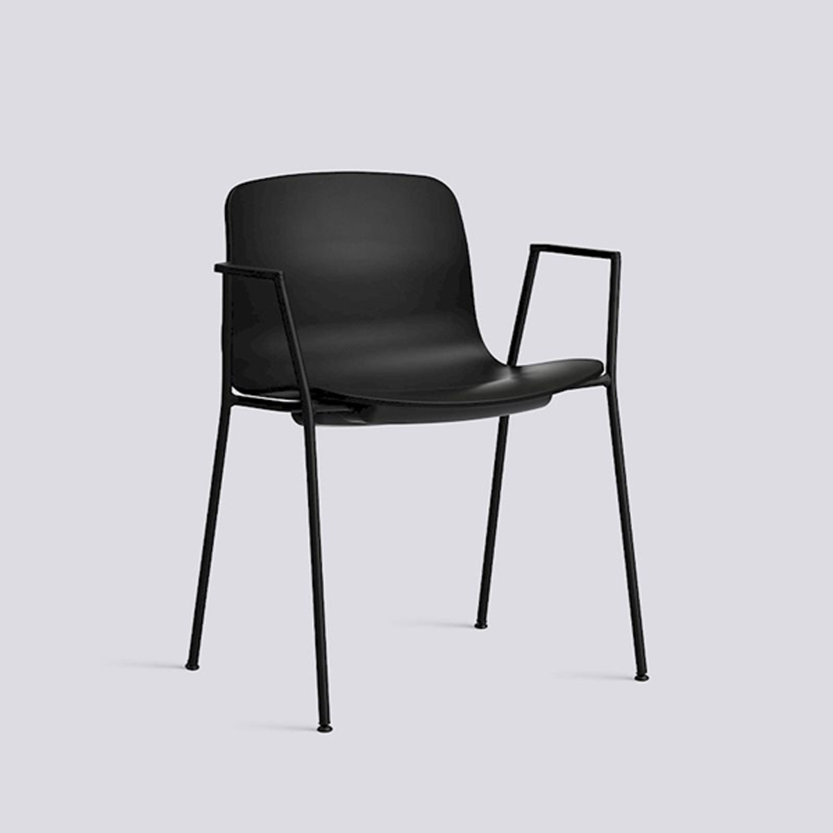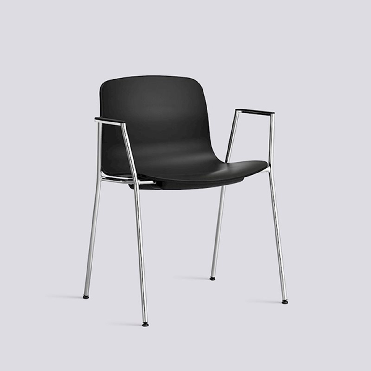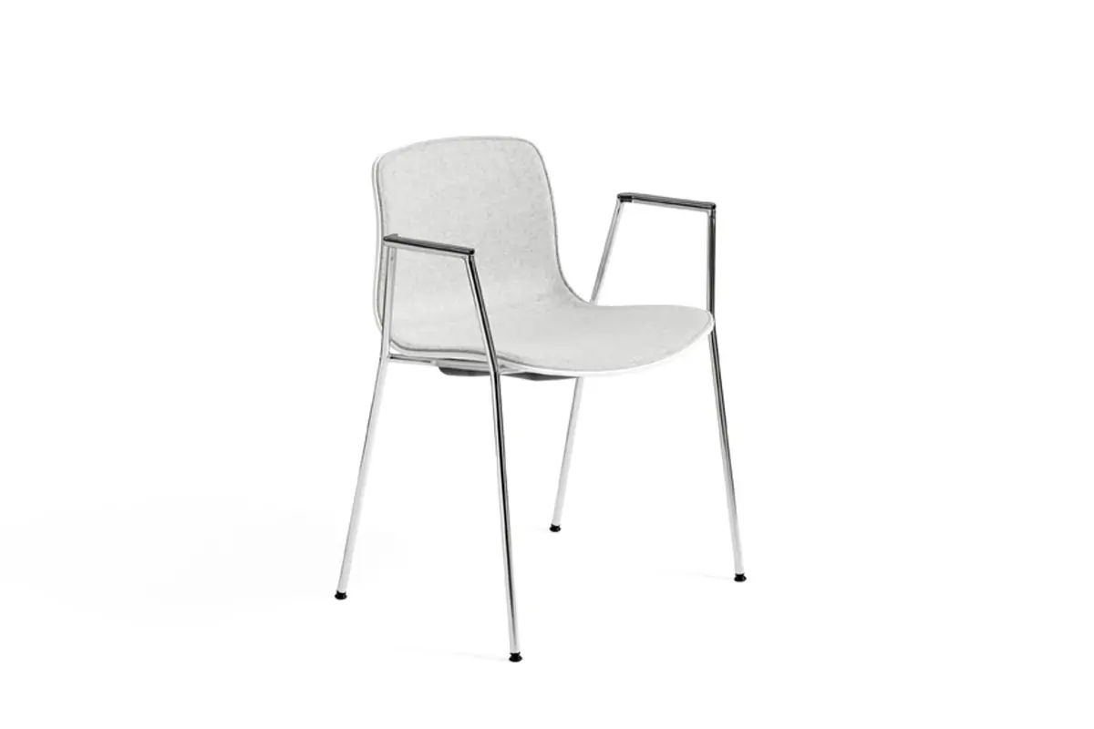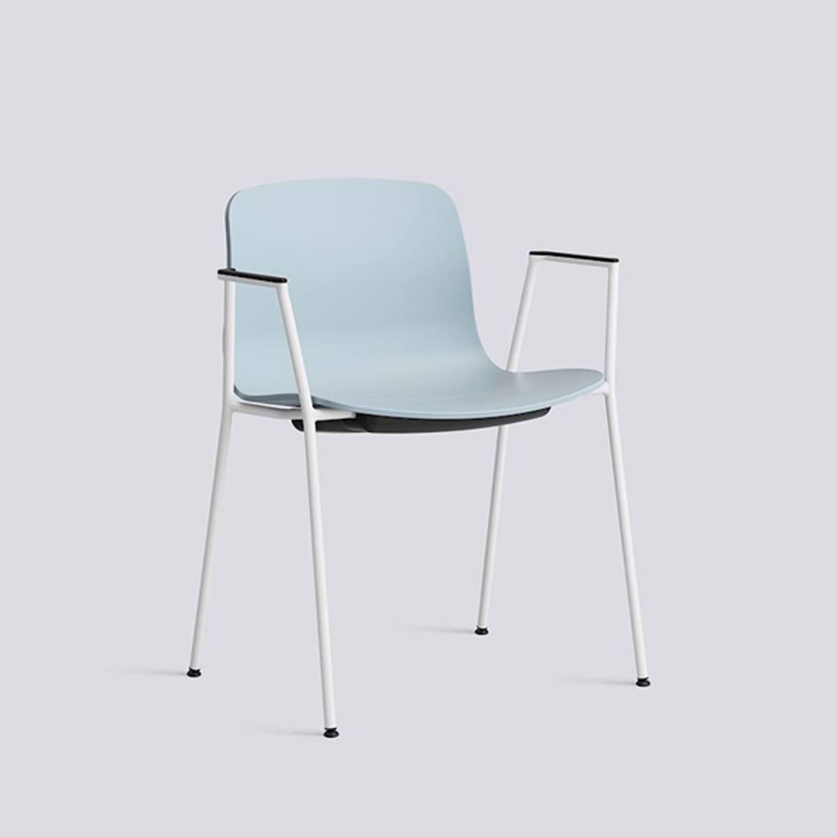 Offering a slightly more formal expression than other designs in the collection, About A Chair AAC 18 features slim, elegant legs and armrests that frame the seat shell. The chair’s upright, slightly rounded seat offers excellent comfort, while the open front conveys a welcoming expression. The legs are available in chrome and powder coated finishes, with the post-consumer recycled plastic shell offered in a wide palette of contemporary colours and multiple front upholstery options. Its refined silhouette and multitude of design combinations make it ideal for using in conferences, dining rooms, or home office environments.