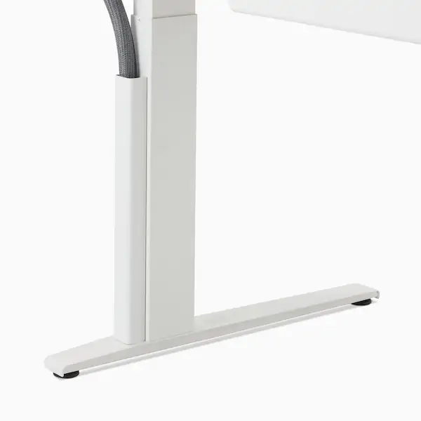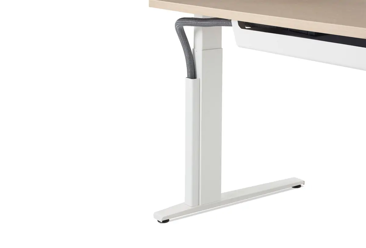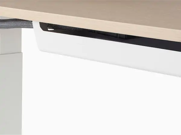 Avoid loose-hanging cables with Ambit’s power cord organizer. Ambit helps manage wire clutter with a cable trough that secures and cleanly routes wires up the table’s leg. This not only keeps wires safe and in good working condition, but it also makes for one less tripping hazard.