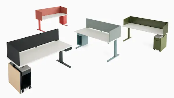Ambit Workspace Solutions from Herman Miller is a scalable and comprehensive offering of accessories designed to support the sit-to-stand working environment. Ambit Vertical Cable Management manages cords through a cleverly designed trough that secures and routes wires up the table’s leg, preventing tripping hazards. This user-friendly cover is easy to apply; its magnetic backing allows it to simply attach to your desk so you can tuck cords discreetly.