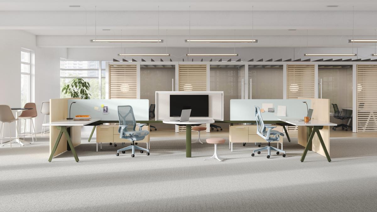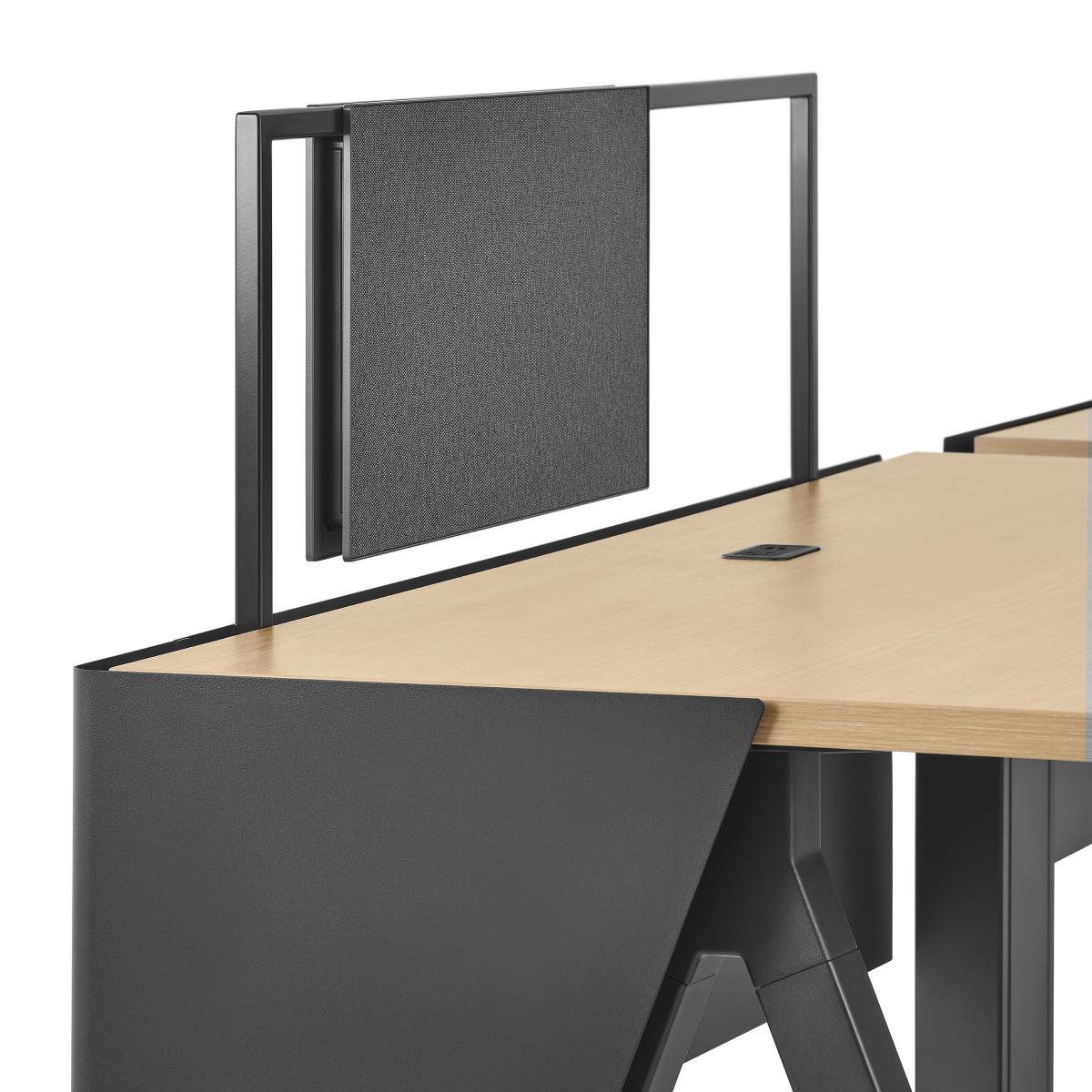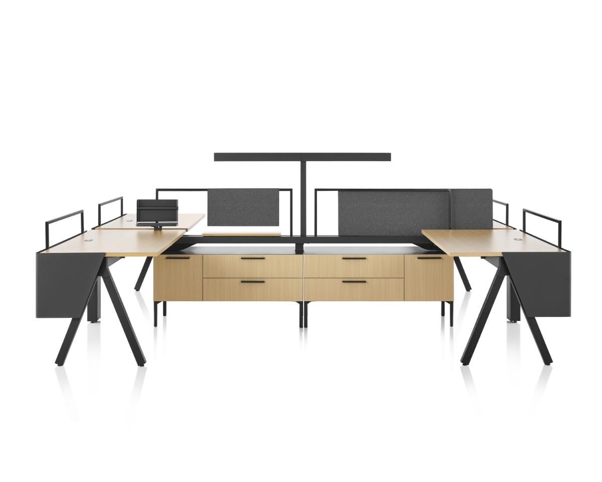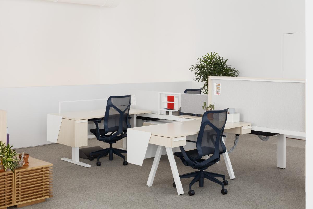 When workspaces are designed efficiently with people in mind, you feel less cramped and distracted. Move inserts into and out of the open-frame screens to dial in the privacy, stow away personal items in purposeful storage, and use T-shaped lights to imply boundaries.