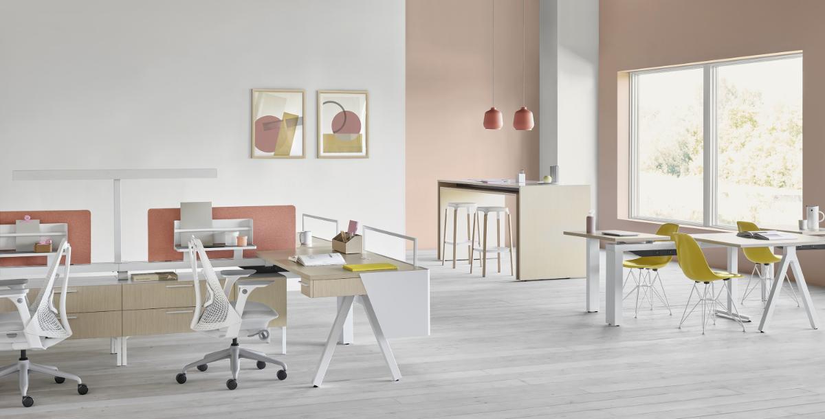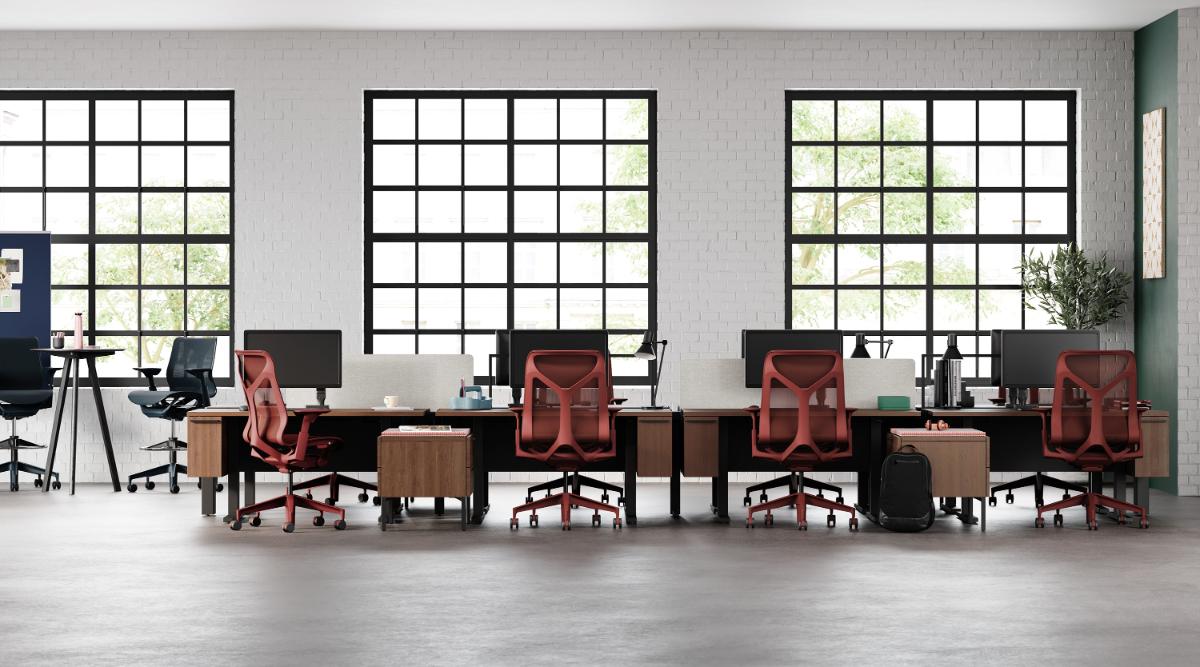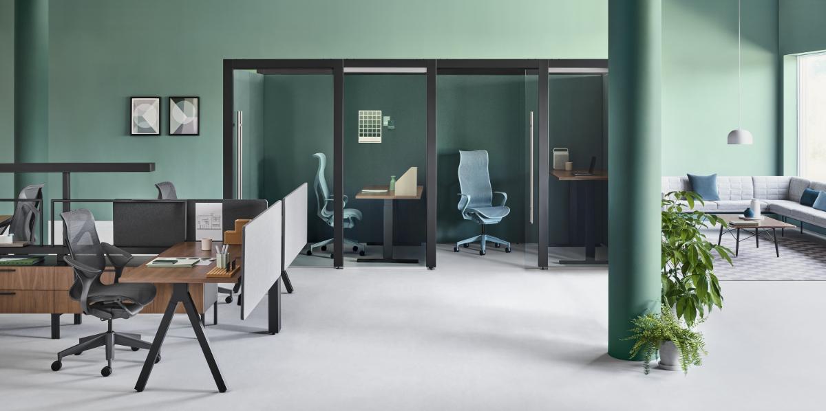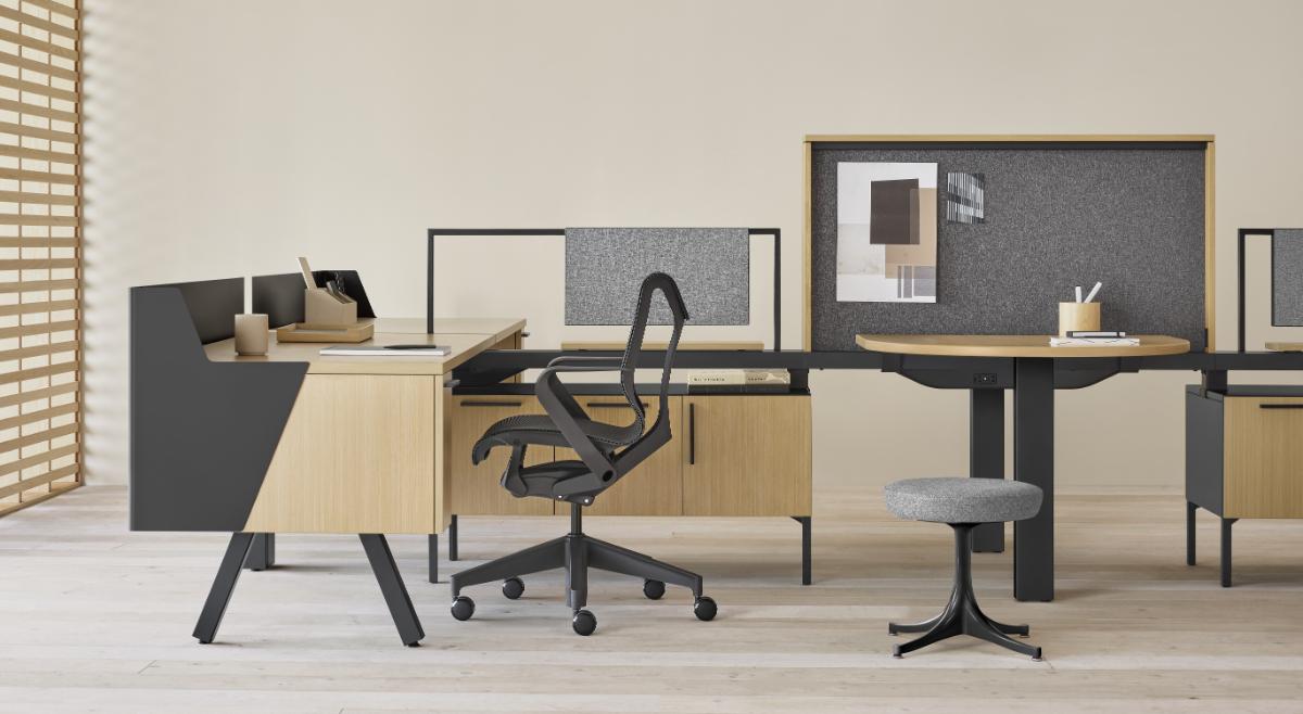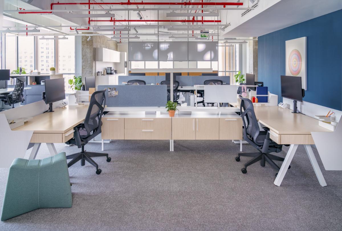 When workspaces are designed efficiently with people in mind, you feel less cramped and distracted. Move inserts into and out of the open-frame screens to dial in the privacy, stow away personal items in purposeful storage, and use T-shaped lights to imply boundaries.