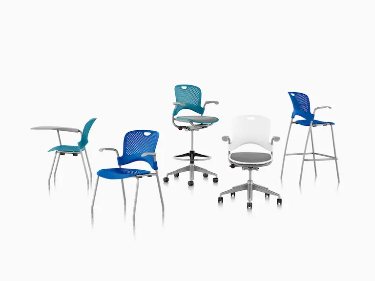 The Caper family of agile, stylish seating includes multipurpose chairs and stools, stacking chairs and stools, as well as the Caper Stacking Chair with Tablet Arm. Mix and match chairs and stools to add practical function and a pop of colour to any space.