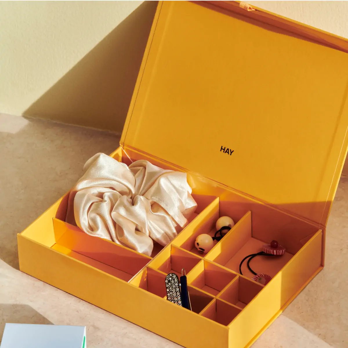 Colour Storage Jewellery Box is a decorative storage container made in a durable, extra thick FSC™-certified (FSC-C148805) cardboard mix with a beautiful glossy finish. Featuring numerous different-sized compartments for separating and storing small items, the boxes are ideal for jewellery, but can also be used for organising and storing a wide range of other items. Available in different colour options, the jewellery box adds a colourful edge to bedrooms, bathrooms, and other rooms in the house.
