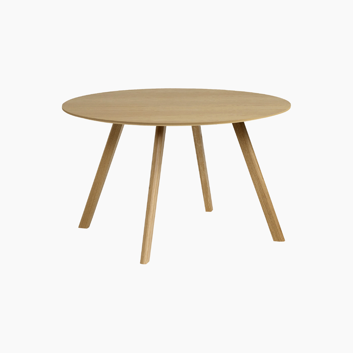 Sharing the same characteristic angled legs as the rest of the Bouroullec brothers’ Copenhague range, the CPH 25 table features a round tabletop that softens the engineered expression. The four-legged table frames and tabletops are available in a variety of wood types, materials, and colours, with the possibility to select matching or contrasting combinations. Equally suitable for intimate meetings and larger, café-like environments, this versatile table has an ability to blend into private homes as well as public spaces.