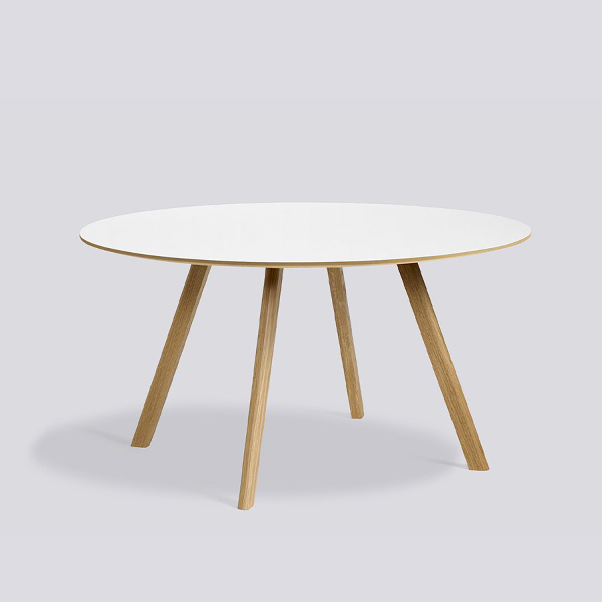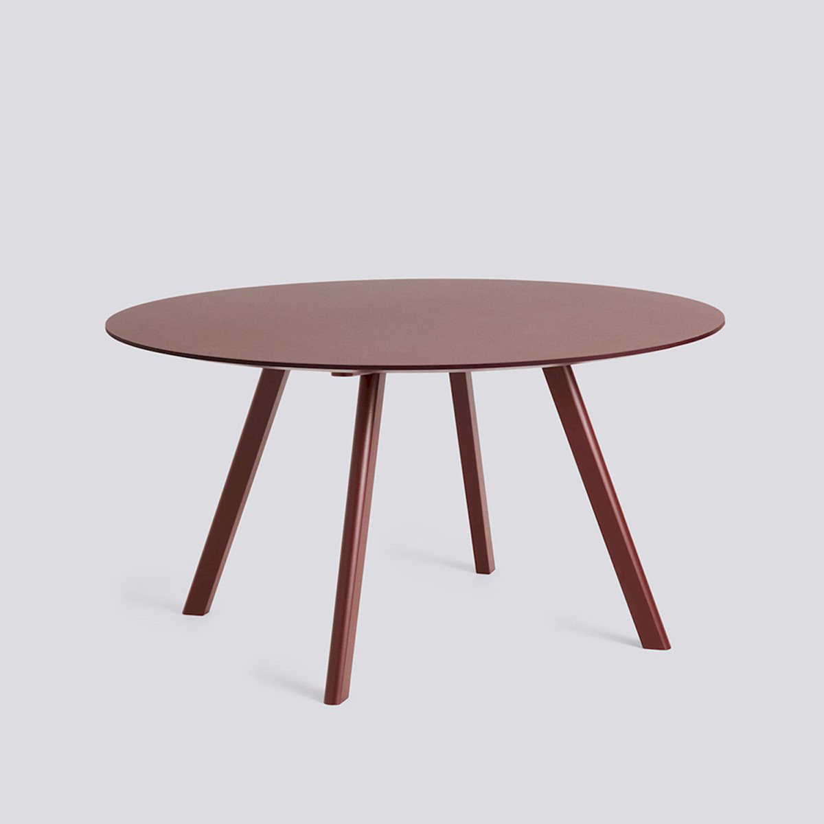 Sharing the same characteristic angled legs as the rest of the Bouroullec brothers’ Copenhague range, the CPH 25 table features a round tabletop that softens the engineered expression. The four-legged table frames and tabletops are available in a variety of wood types, materials, and colours, with the possibility to select matching or contrasting combinations. Equally suitable for intimate meetings and larger, café-like environments, this versatile table has an ability to blend into private homes as well as public spaces.