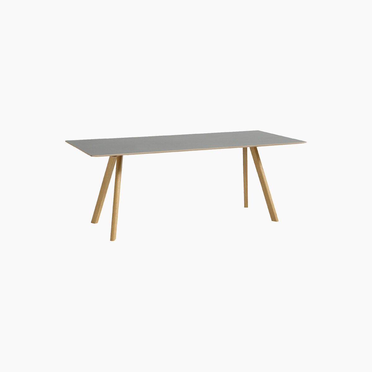 Part of the Copenhague range designed by Ronan and Erwan Bouroullec, the CPH 30 shares the same characteristic angled legs and strong identity that are consistent with the rest of the series, while this variant has a rectangular tabletop. It is available in different sizes, with tabletops and frames in a variety of wood types and materials, offering the possibility to select matching or contrasting combinations. The CPH 30’s versatility and uncluttered design make it ideal for using as a desk, conference table, or dining table in an office context or a private setting.