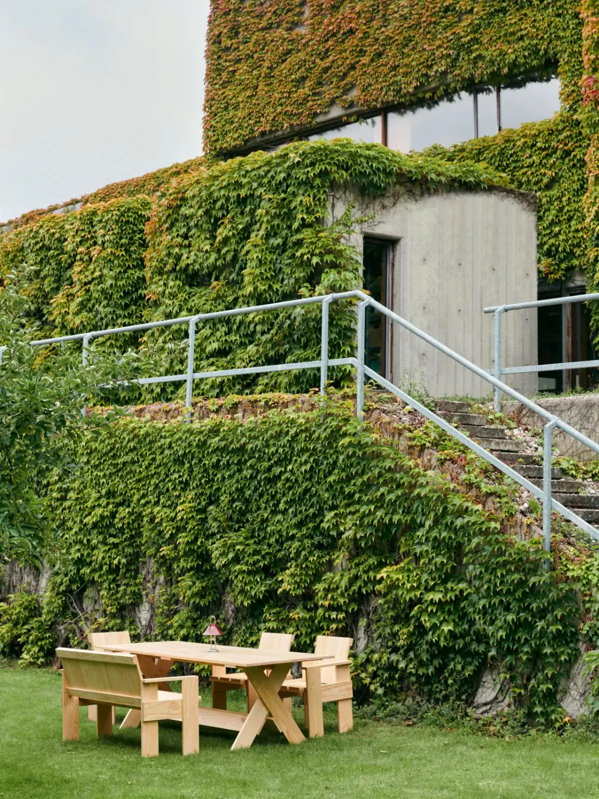 Initially designed to make use of surplus wooden shipping crates by Dutch architect and designer Gerrit Rietveld in 1934, the Crate Collection has been relaunched in a Rietveld Originals x HAY collaboration. Made with respect for the original design, the Crate Dining Table shares the same precisely balanced proportions and transparent construction to minimise production costs and optimise the assembly process. Available in two different lengths, with a rectangular tabletop and diagonal crossbars, the table’s simplicity and spatial design mirrors the designer’s architectural principles – providing functionality and comfort without absorbing space. Crafted in solid pine, with a water-based lacquered finish in different colour options, the Crate Dining Table is suitable for a wealth of outdoor settings.