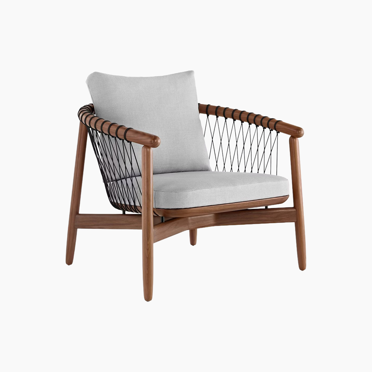 The Crosshatch Chair from Geiger creates a feeling of being suspended in comfort. Its latticed parachute cord is interlaced with the chair’s graceful wood frame to create a visually light alternative to the standard club chair. Crafted with intricate joinery, the Crosshatch Chair strikes a harmonic balance between industrial materials and traditional woodcraft.