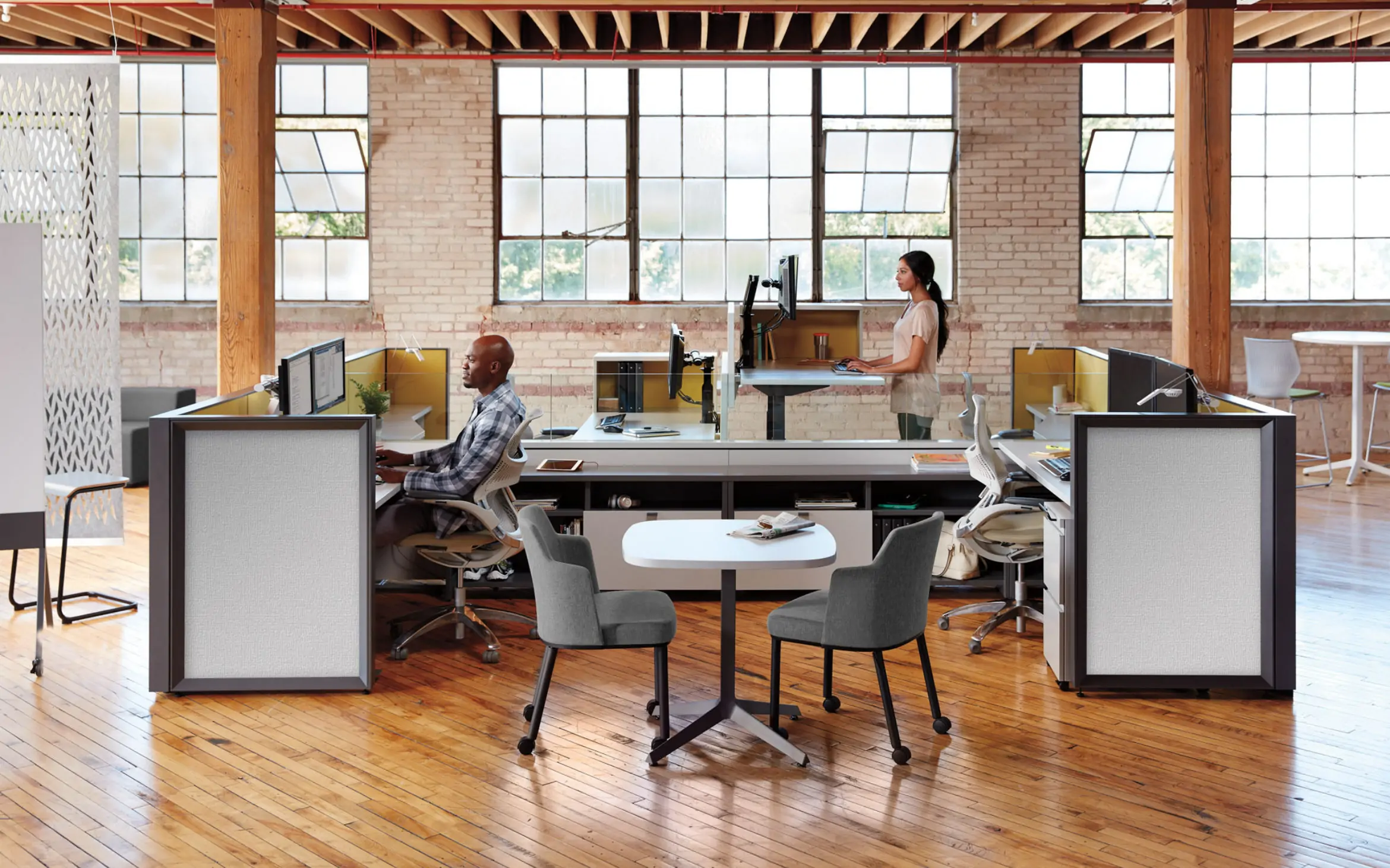 Dividends Horizon Panels support integrated Series 2 storage and Tone Height-Adjustable Table to support work in exactly the footprint needed.