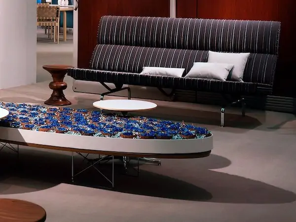 The Eames sofa compact started out as a built-in sofa in the Pacific Palisades home that Charles and Ray Eames designed for themselves in the 1940s. They liked the sofa so much that they developed a freestanding version—first in wire, then the current model, which has been in continuous production since 1954.