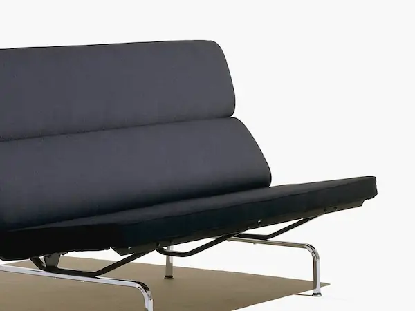 The Eames Compact Sofa from Herman Miller is perfectly scaled for spaces too small for a traditional sofa. Its sleek design seats three on durable foam cushioning supported by a lithe, graceful steel frame.