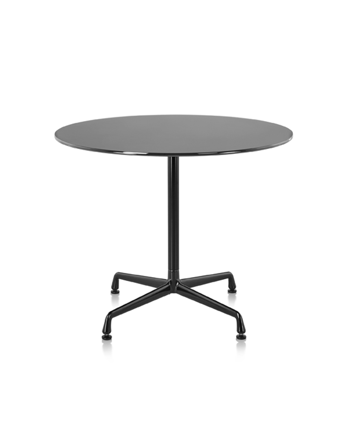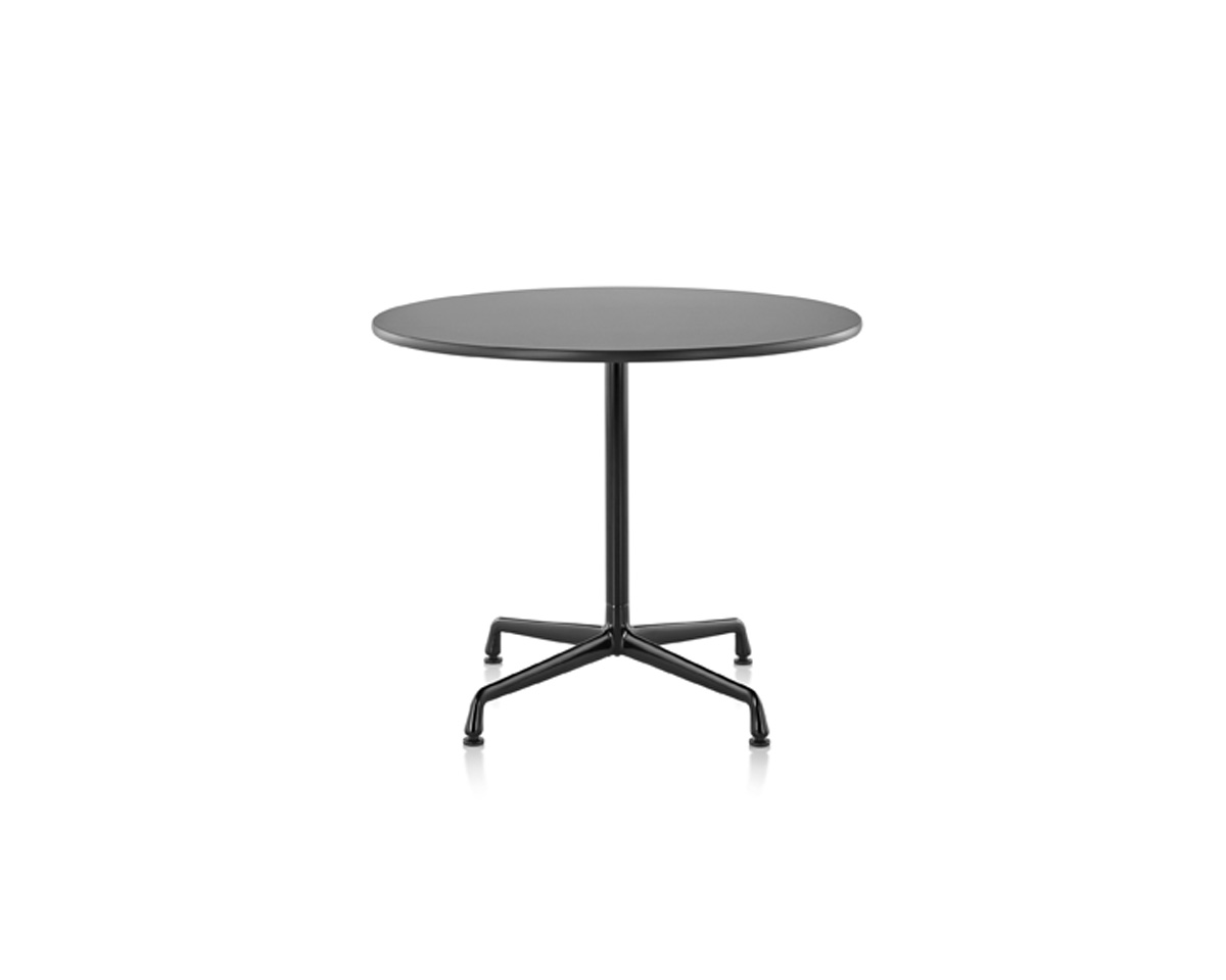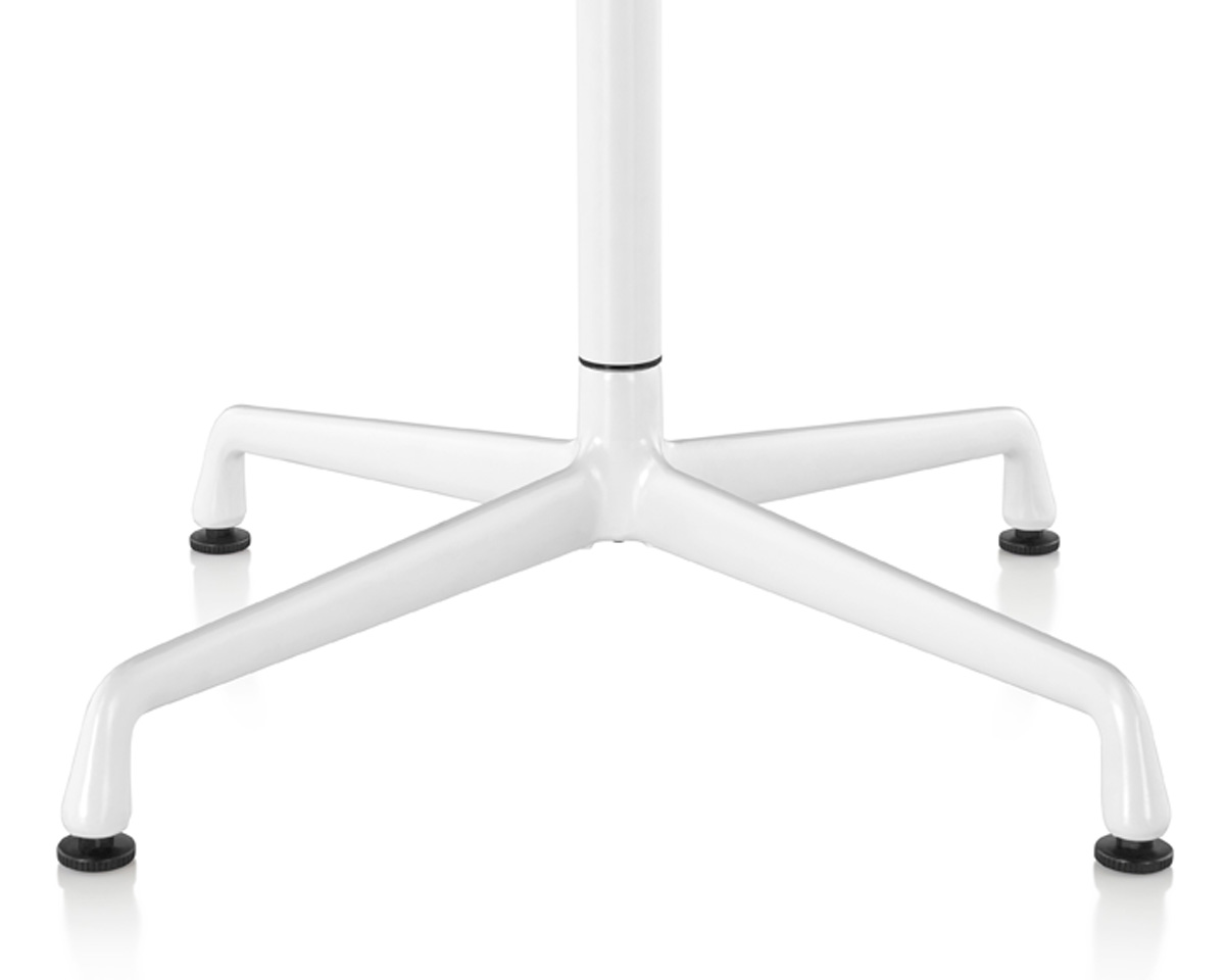 Strength and simplicity define the Eames Tables from Herman Miller. They’re offered in a range of heights, materials, and finish options, with optional inset power outlet integration. Round grommets guide cables under the tabletop and within the column and base where they’re hidden for a clean aesthetic.