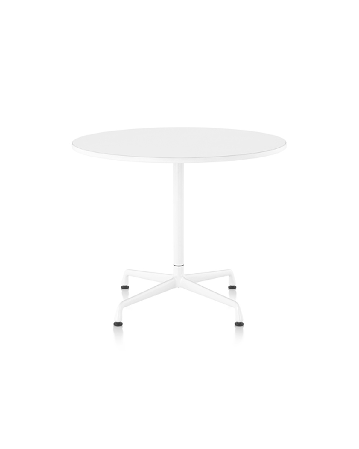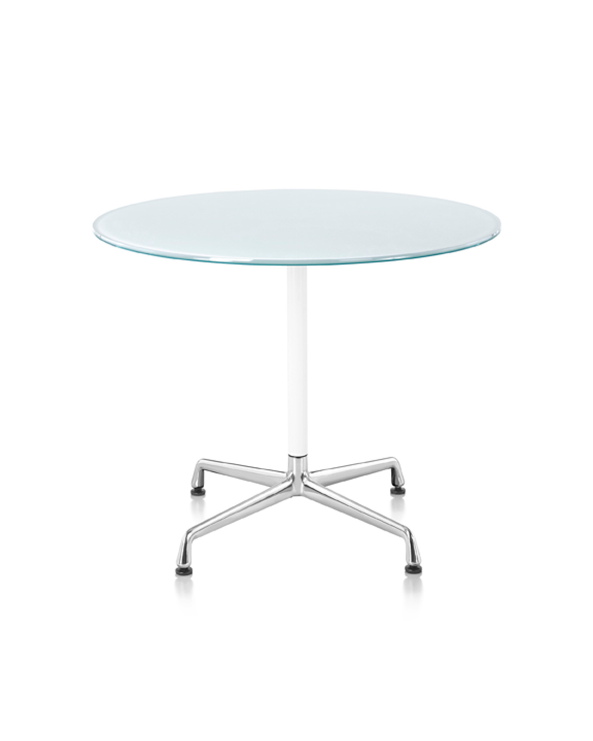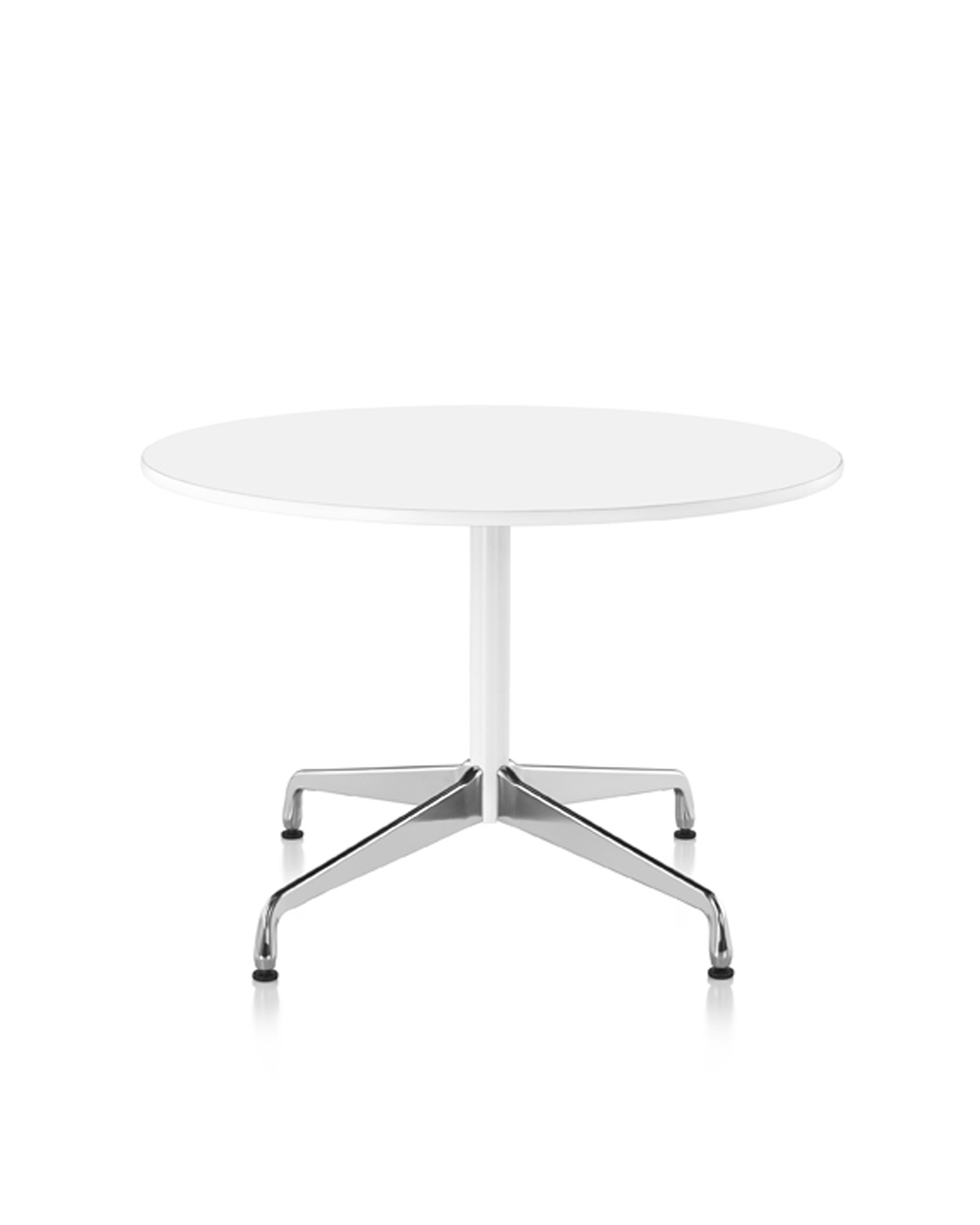 Strength and simplicity define the Eames Tables from Herman Miller. They’re offered in a range of heights, materials, and finish options, with optional inset power outlet integration. Round grommets guide cables under the tabletop and within the column and base where they’re hidden for a clean aesthetic.