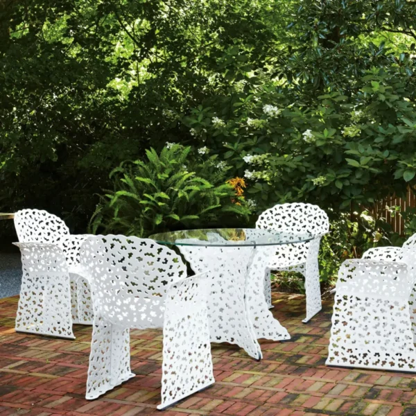 The Eames Wire Outdoor Chair from Herman Miller is a unique iteration of the Shell Chair form that was originally introduced in 1951. Its design is inspired by wire trays, dress forms, and baskets, resulting in this minimalistic, powder-coated chair designed to weather the outdoor elements. An optional full-piece leather seat pad or a criss-cross “bikini” pad are available to provide an extra touch of comfort. This modern wire chair is ideal for courtyards, patios, and other hospitality settings.
