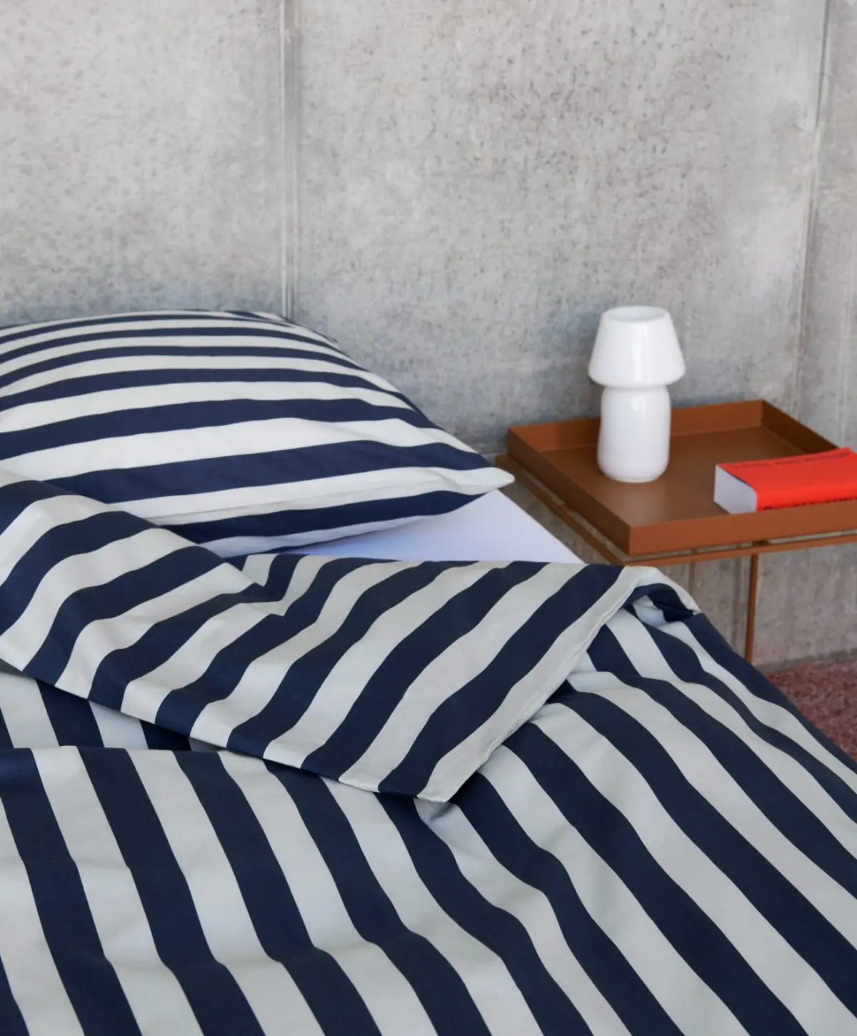 Crafted in crisp, soft cotton with contrasting stripes, Été Duvet Cover is a HAY x Amanda Borberg design collaboration that brings to mind hot summery days, with sandy beaches and fresh sea air. Available in various colours and sizes, the duvet colour can be used as a matching set or mixed with other HAY bedlinen.