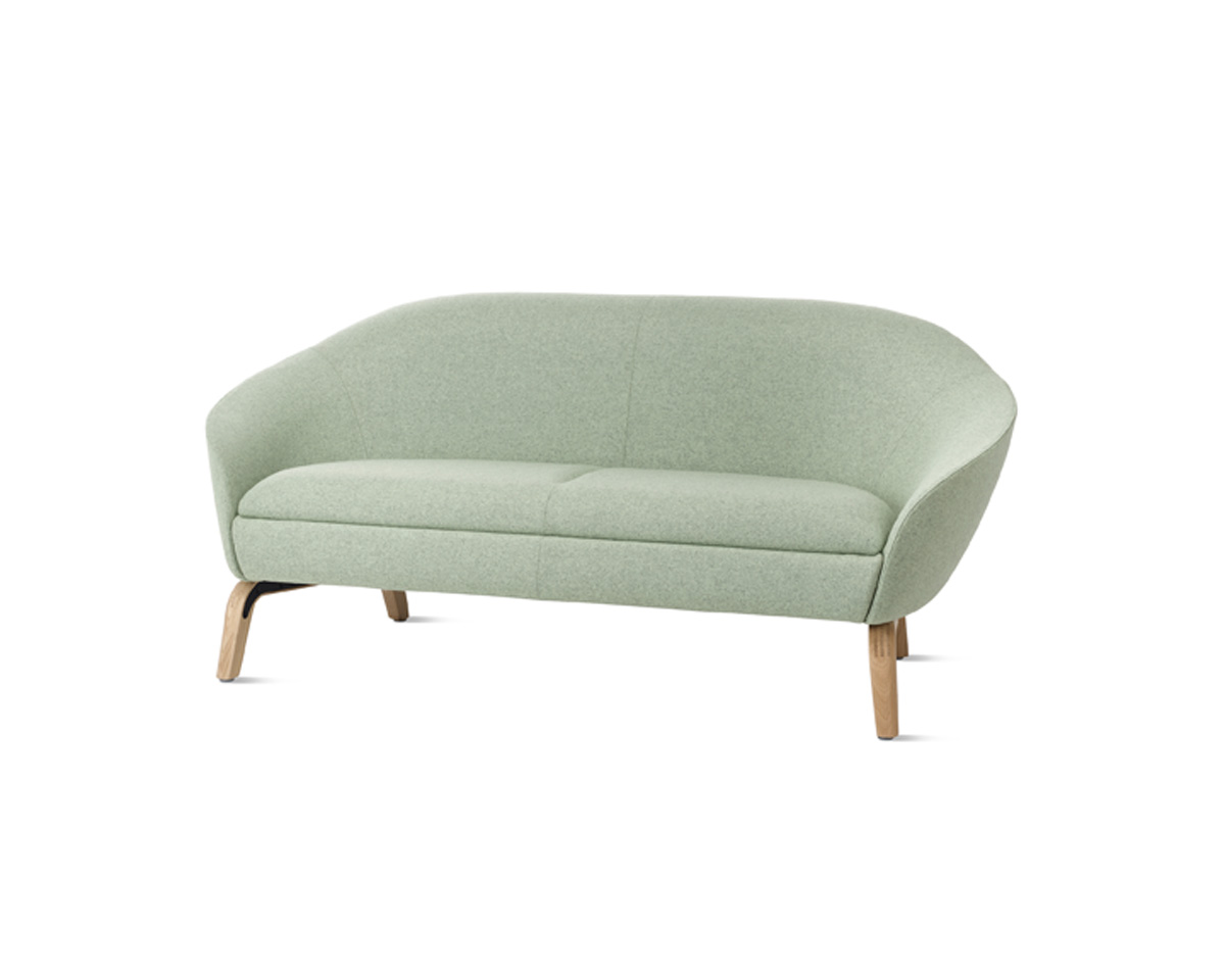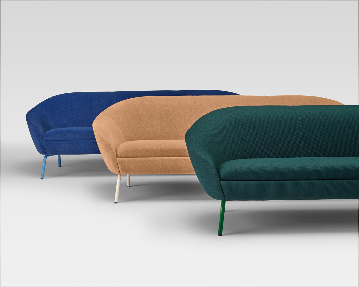 The Ever Sofa from NaughtOne is designed with soft, embracing curves to welcome sitters. Inviting and cheerful, it is available in two- and three-seat versions. Fully upholstered in a wide range of fabrics and available in a steel or wooden base, it can be returned to NaughtOne after its long life to be responsibly recycled.