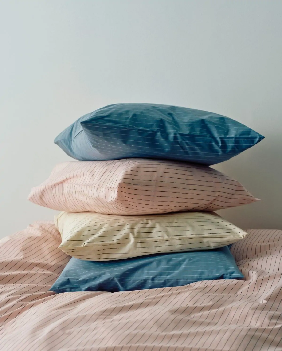 Fineline Pillow Case combines classic stripes with soft organic cotton to bring elegance and comfort into the bedroom. The percale cotton feels crisp and cool against the skin, offering a lasting freshly laundered feeling, while yarn-dyed fabric enhances its colours. Available in different colour options, the Fineline Pillow Case is designed to be used with the matching duvet cover in contrasting vertical stripes to create a relaxed, timeless expression.