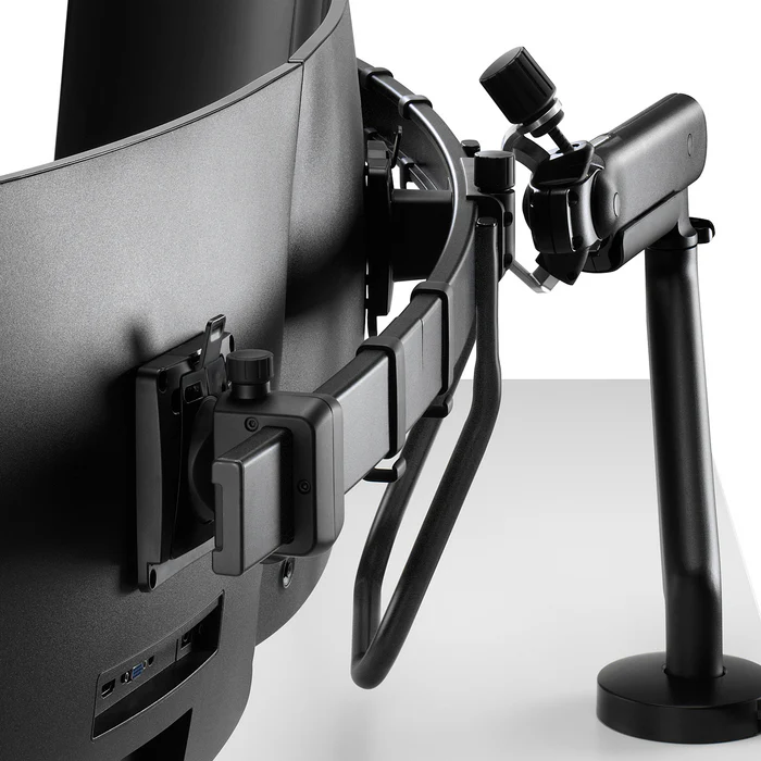 Having multiple monitors needn’t mean a tangle of cables as Flo X has the capacity to keep them all neat, tidy and under control. That means no more wayward cables to snag and catch while adjusting screens and no more awkward body positions to rethread, re-plug and untangle them.