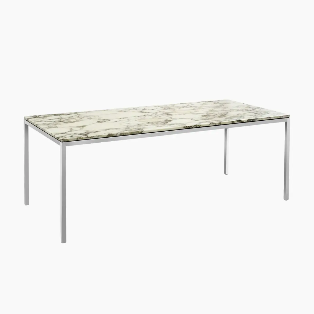 The Florence Knoll Dining Table from Knoll strikes an iconic silhouette that elevates office and hospitality spaces. Its tabletop, available in polished or satin marble, is coated in transparent polyester to protect from stains and sits atop solid steel legs in a polished chrome finish.