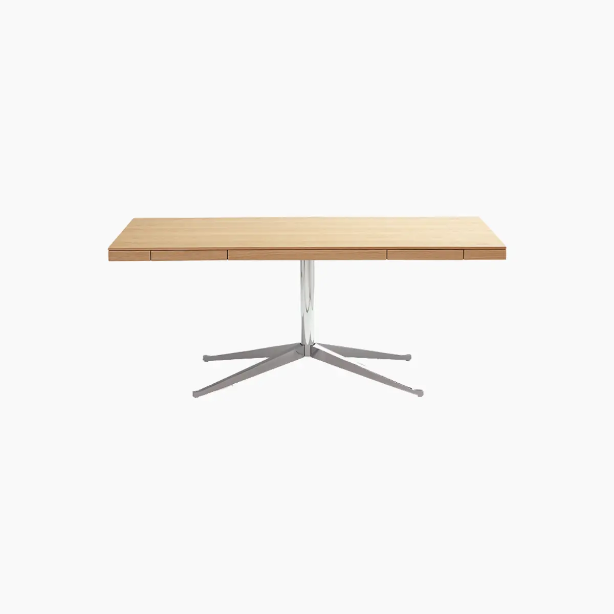 The elegant 2480 Pedestal Table Desk, introduced in 1961, exudes executive quality and epitomizes Mies van der Rohe’s impact on Florence’s approach to design. Each detail was endlessly refined to achieve simple, seemingly effortless beauty. Knoll Development Group member Vincent Cafiero: “She had an ability to see. I remember working with her on the base of the table, and we were talking about fractions of an inch — 16ths and 32nds of a taper — just to get it absolutely right.” Despite being conceived for the office, the table has found itself in many dining rooms over the last fifty years.