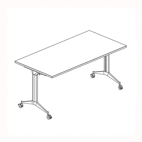 Genus family is the Flip-Top Rectangular Table. Set on castors, this table is ready to shift from space to space, and from spontaneous interaction to formal presentation, in an instant.