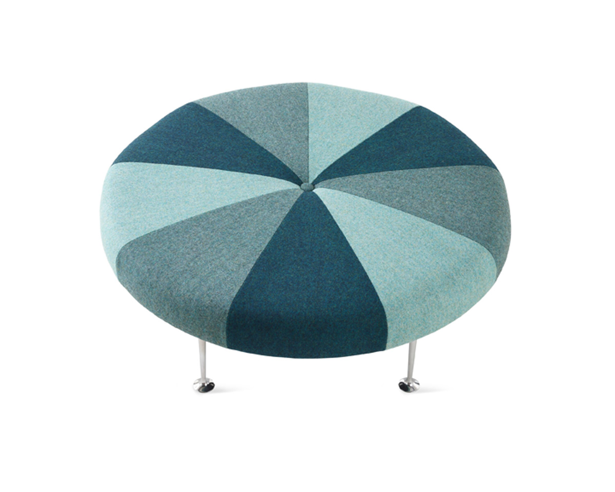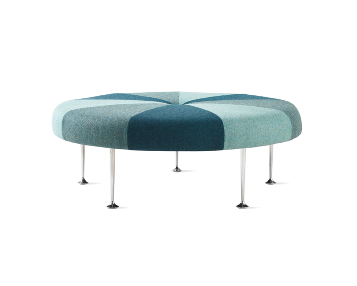 The Girard Color Wheel Ottoman from Herman Miller brings playfulness to lobbies and common areas with a pinwheel of color. Offered in a range of color combinations, this low, upholstered ottoman can also be used as an impromptu table surface.