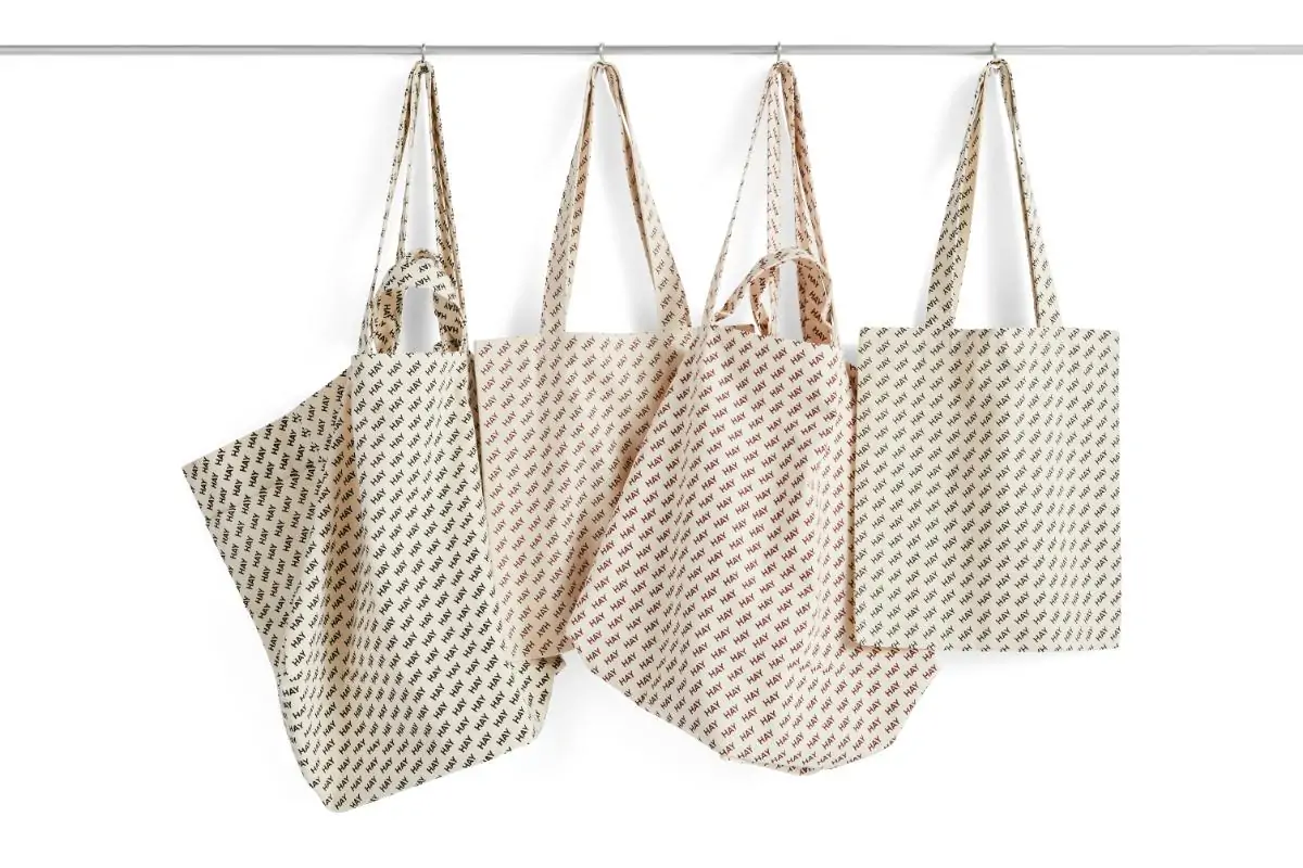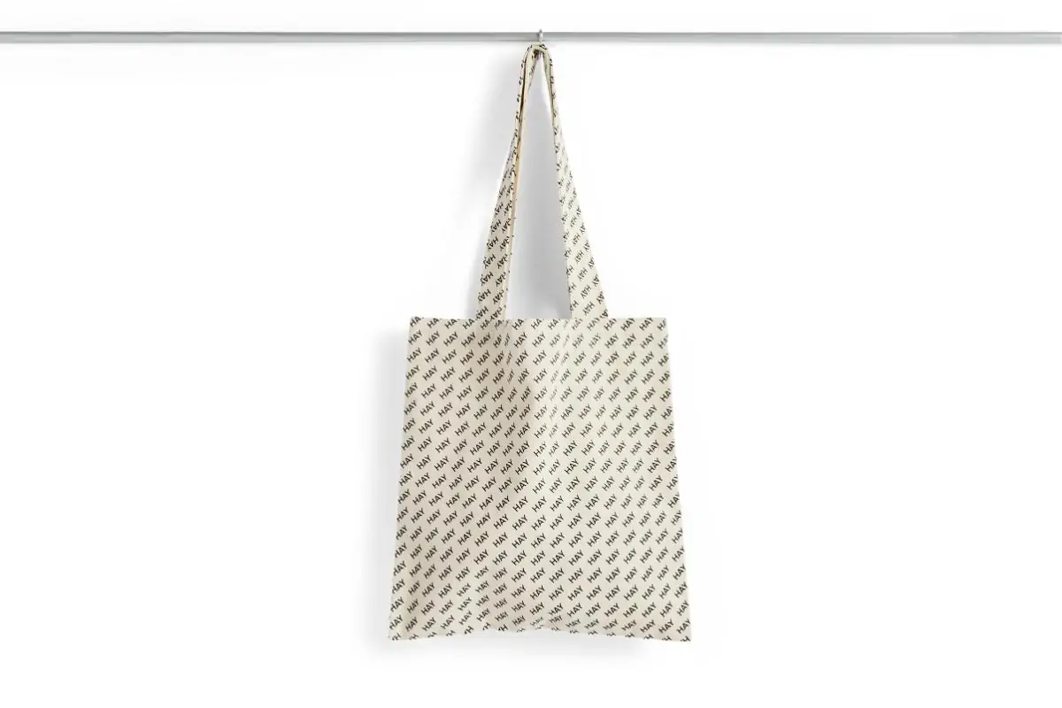 The HAY Logo Tote Bag features long handles and a miniature all-over HAY logo print to create a functional and distinctive shopping bag. The bag is made in organic cotton and is available in different colour combinations.