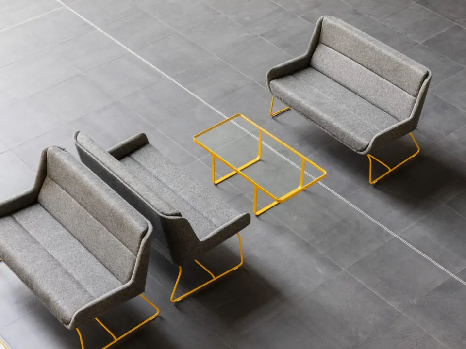 Specify Hush Low Sofa with your choice of base – sled in powder-coated steel or a host of RALs, or classic wood finishes – turn up the volume with two-tone, and style to the brief with NaughtOne’s near limitless fabric options.
