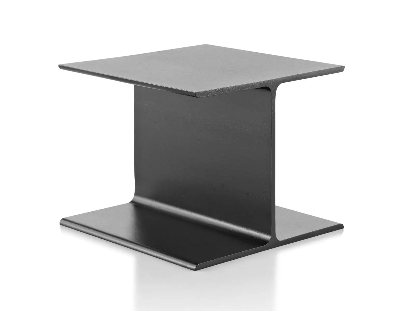 A versatile pedestal, side table, or coffee table, Ward Bennett’s I Beam Tables pay tribute to modern architecture and industrial exactness. Crafted from powder-coated cast aluminum and either left bare or topped with glass or stone, the I Beam Tables offer an auxiliary surface and a witty artistic statement.