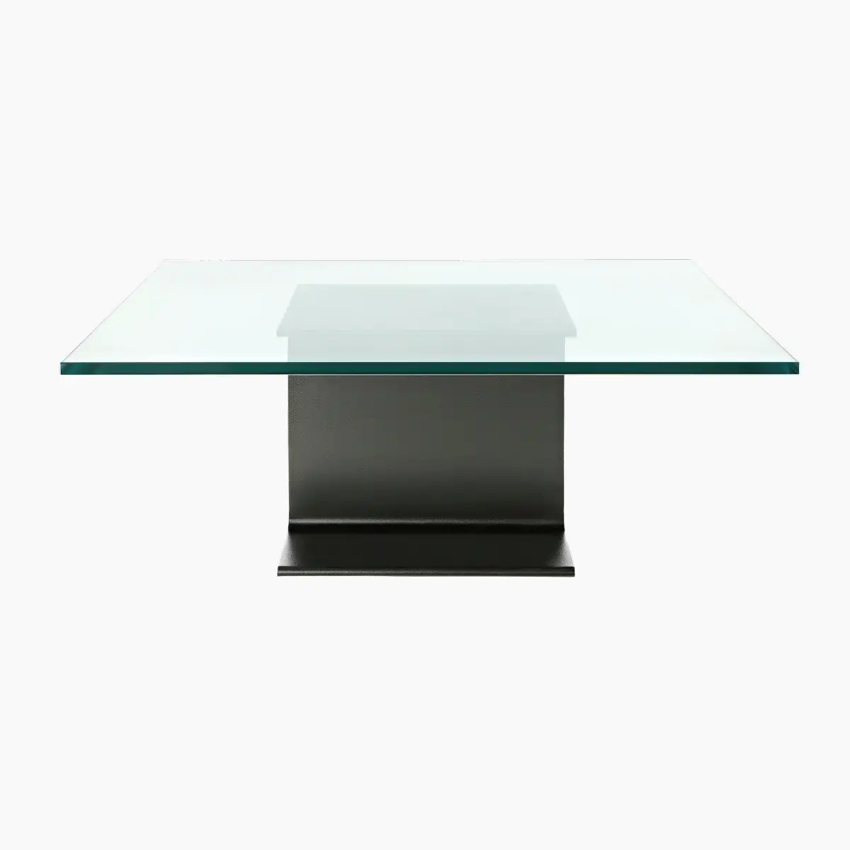 A versatile pedestal, side table, or coffee table, Ward Bennett’s I Beam Tables pay tribute to modern architecture and industrial exactness. Crafted from powder-coated cast aluminum and either left bare or topped with glass or stone, the I Beam Tables offer an auxiliary surface and a witty artistic statement.