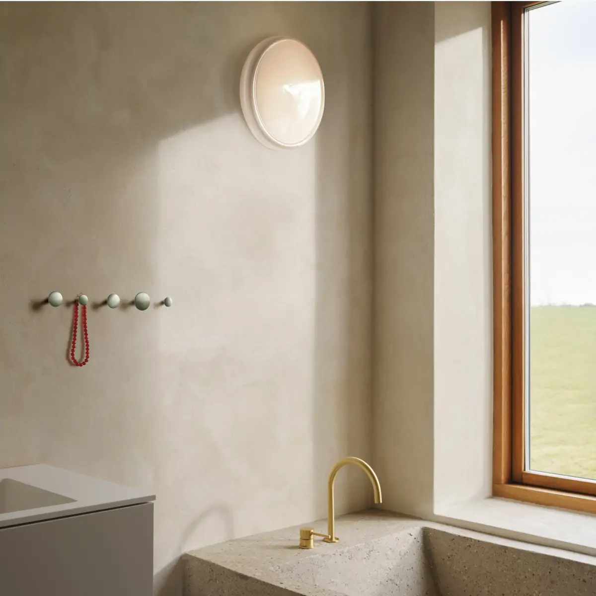 The Looped Wall/Ceiling Lamp offers a fully illuminated design with soft, dimmable light. The three-layered, mouth-blown glass with rounded edges creates a subtle 3D effect that changes depending on the angle, casting a halo of light with shifting rings onto the wall or ceiling. With its mono-material design, the casing becomes the lamp itself, bringing a quiet yet efficient presence. Elegant in repetition, it refines hallways and ceilings with ambient and functional lighting. The integrated, non-user replaceable LED ensures long-lasting functionality. The IP44 version is built to handle humidity and light splashes, making it a suitable and refined choice for bathroom use.