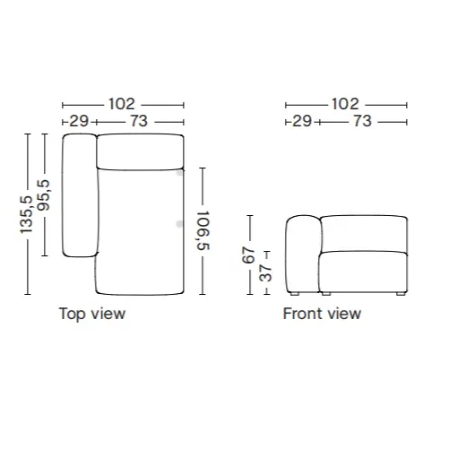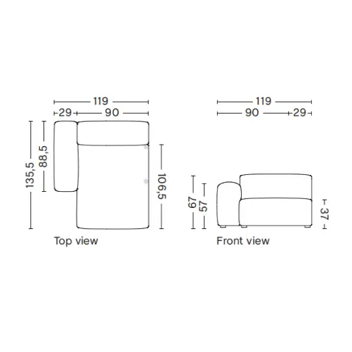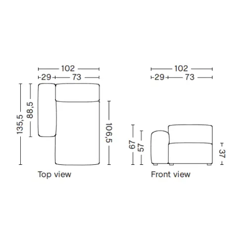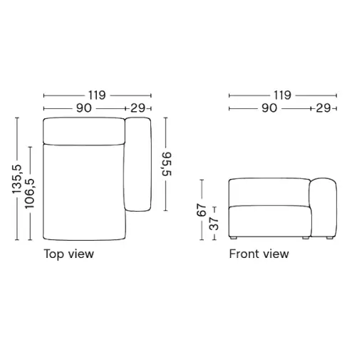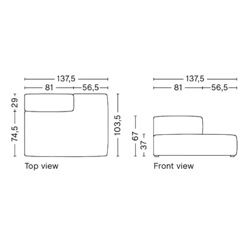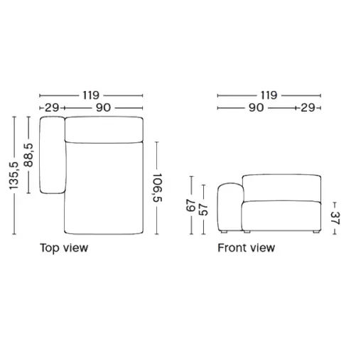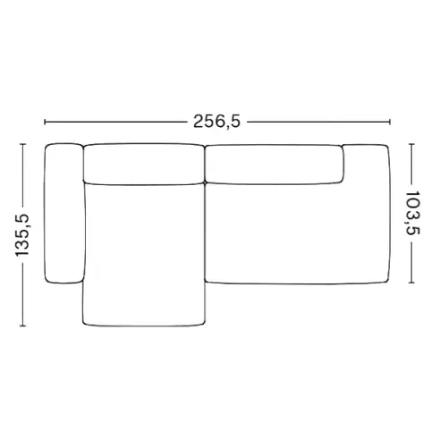 W256,5 x D135,5 x H67 cm