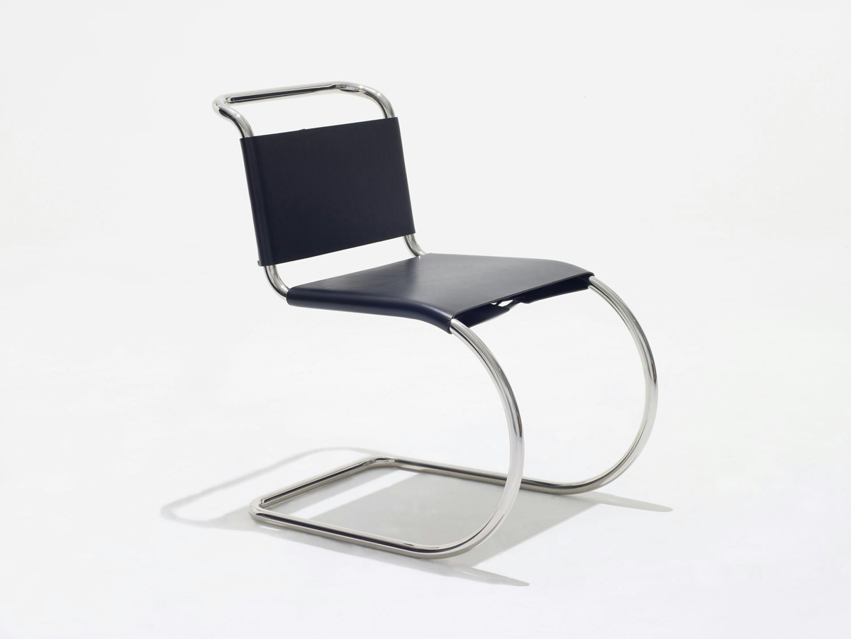 The origins of the bent-steel cantilevered chair are somewhat murky, but generally three names come up in the discussion. Marcel Breuer is widely credited with pioneering the exploration of the material, Mart Stam seems to be the first to conceive a “chair without back legs”, and Mies van der Rohe is remembered as the one who made it beautiful.