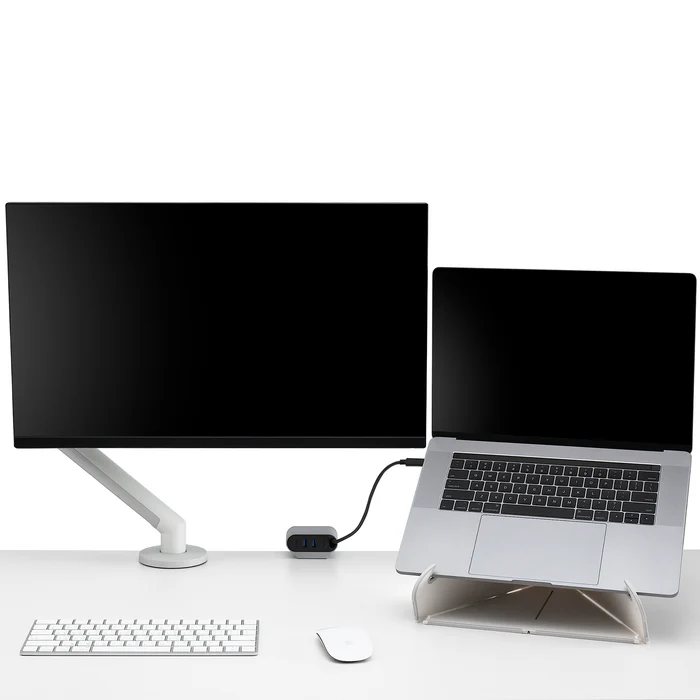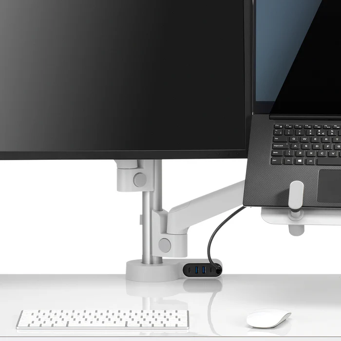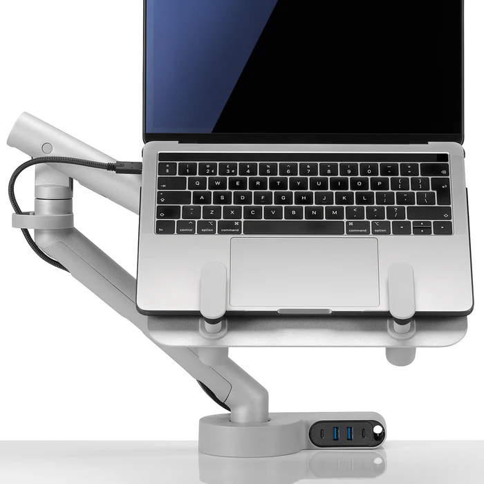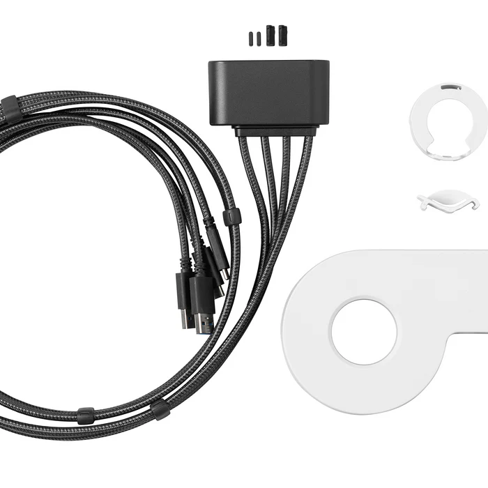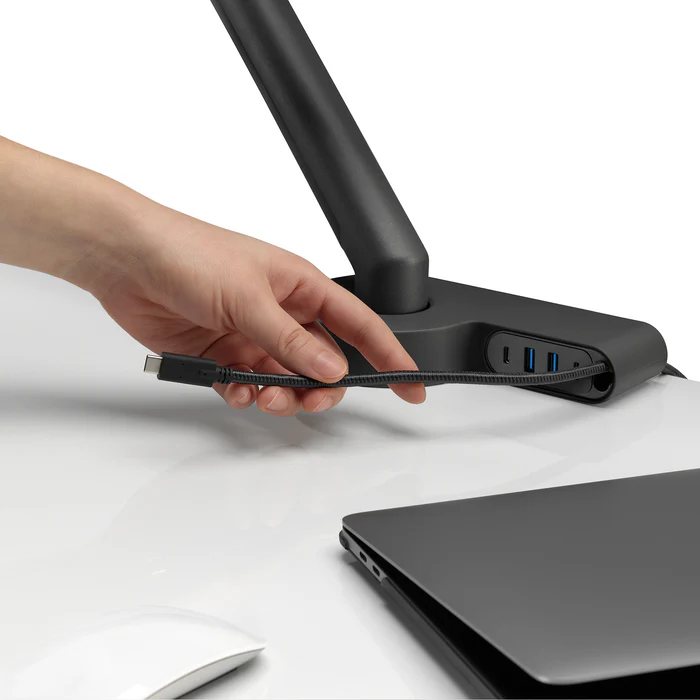 The Ondo Connectivity Module from Herman Miller tames cable clutter and provides pass-through access to power. Ondo was designed for easy attachment to Flo, Ollin, Lima or Wishbone monitor arms, supporting an neater desk space by organizing cords and cables and routing them to an under-desk docking station.