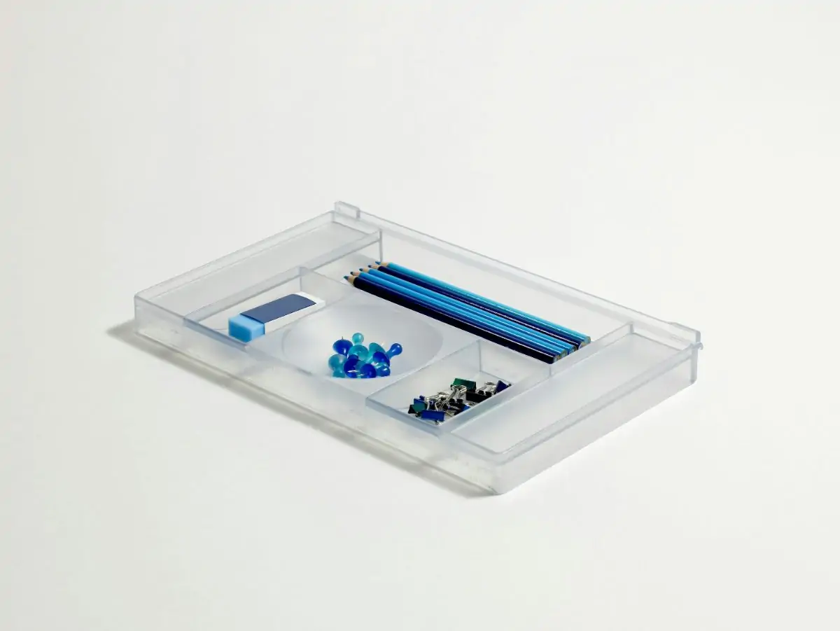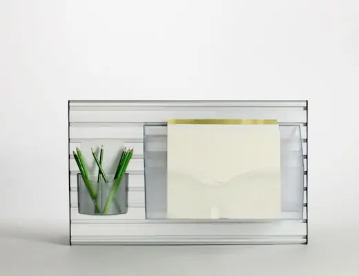 The Orchestra collection of desk accessories and storage solutions is tuned to the different functions, work habits and individuals of the modern workplace. Borrowing from the principles and logic typically reserved for architecture and space planning, Bruce Hannah and Ayse Birsel developed components that create order from chaos.