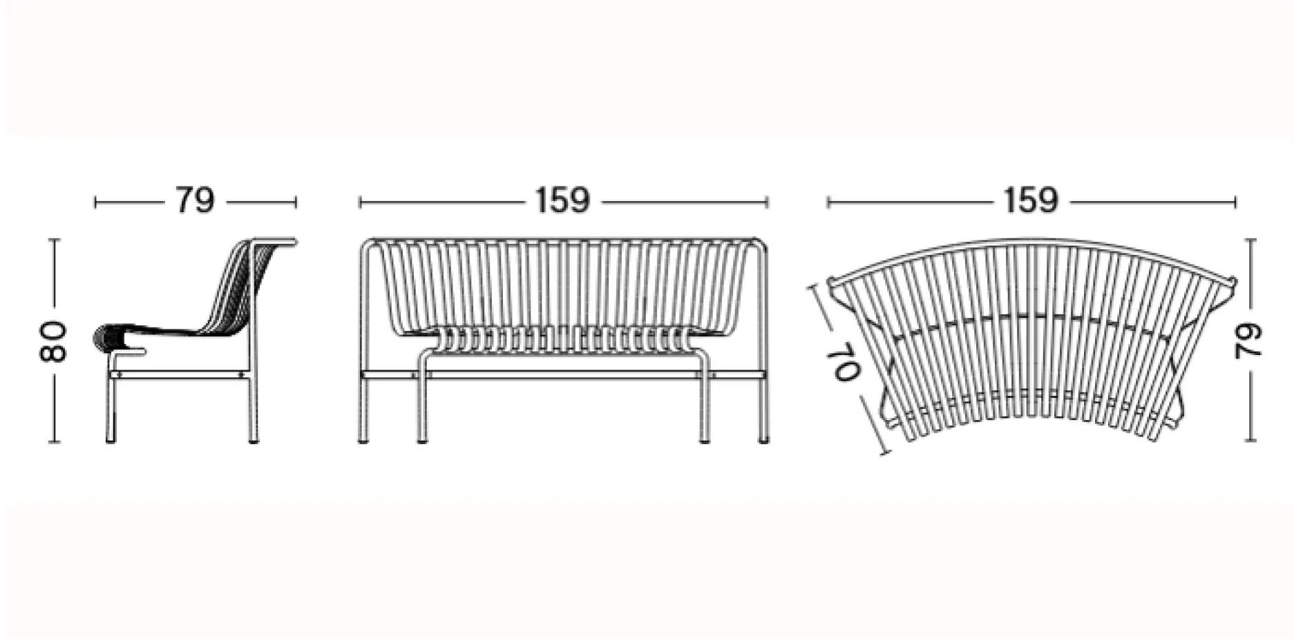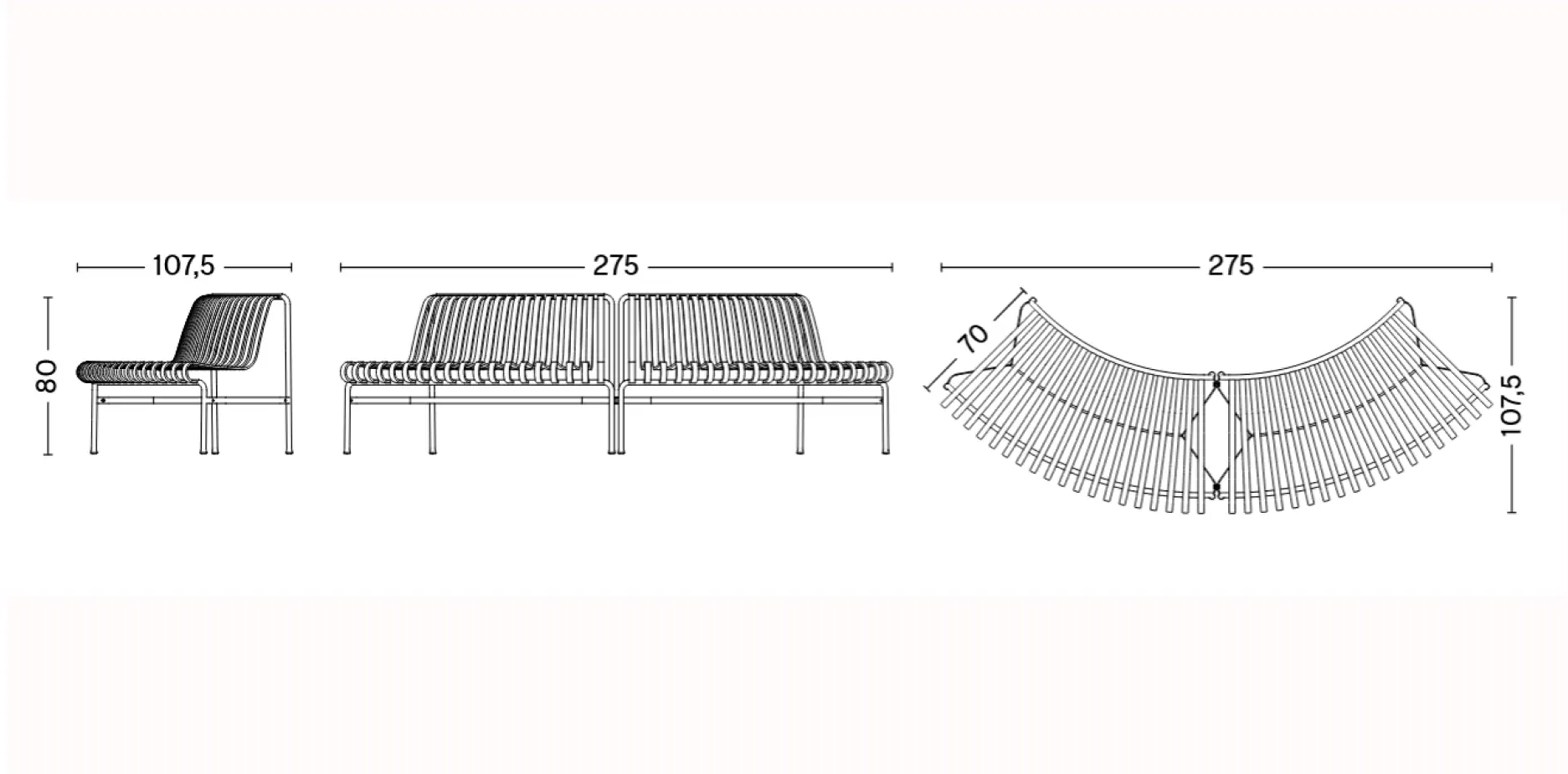 The Palissade Outdoor Collection from HAY is a study in contrasts, combining visual simplicity with core strength. Constructed from powder-coated steel, the Palissade Park Dining Bench features a supportive, sloping back and a curved frame that allows for flexible seating arrangements, from circles to arcs, making it perfect for social gatherings or group collaboration. Engineered for all-weather resilience, it ensures lasting durability in any outdoor setting, making it ideal for outdoor office spaces and hospitality environments. Optional cushions provide added comfort, while fixation brackets provide peace of mind.