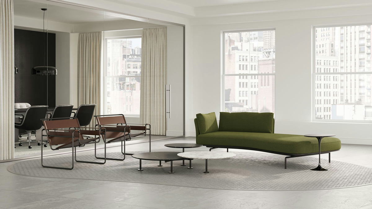 The Panoramic Sofa from Knoll is crafted with exceptional refinement and versatility. Fluid lines and adaptability deliver endless configurations, from chaise lounge to bench to daybed or sofa. The mobile backs make rearranging easy, while the tubular steel structure ensures longevity. Topped with luxurious cushions, it’s a sartorial touch in lounges or hospitality settings.
