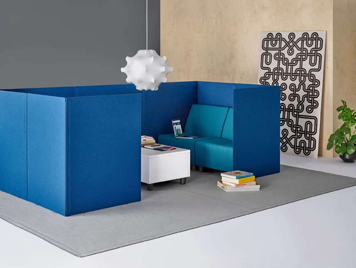 The privacy screens are tackable and share a frameless, thin profile, with complementary colors, providing a consistent aesthetic across settings and work with any Herman Miller product.