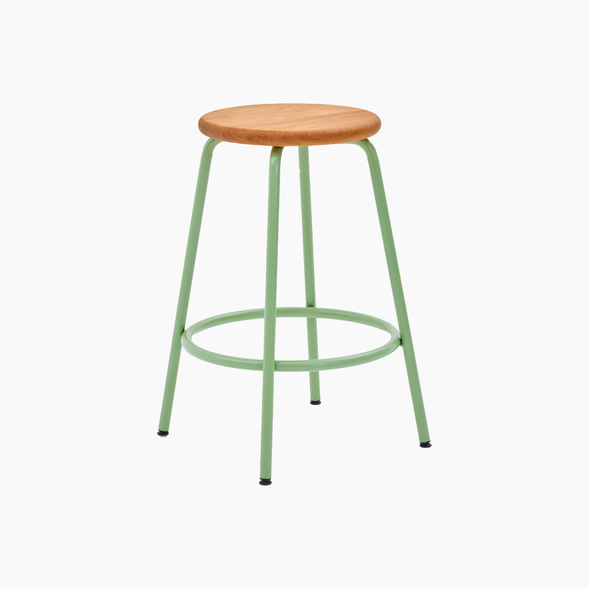 The Penny Stool from NaughtOne is a colorful place to perch. This playful stool offers a timeless design that can be dressed up or down. Available in low-, counter-, and bar-heights, it comes in an array of color options and also stacks four-high for simplified storage.