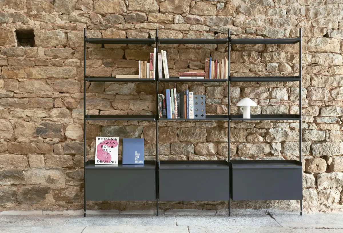 Designed by French designers Ronan & Erwan Bouroullec, Pier System is a multifunctional storage system developed to accommodate and adapt to modern lifestyle requirements. Featuring a flat-pack design that is easy to assemble, reconfigure and recycle, the simple construction provides a flexible shelving solution for organising and storing a multitude of items. Constructed from lightweight aluminium and steel using the minimum number of components required to create a complete storage system, Pier System is available in a variety of colours and set configurations that can be combined with each other. Elements that are part of these configurations can be moved around as needed and desired, enabling the user to incorporate work, wardrobe or organisational functions into most rooms and environments, from living rooms and bedrooms to entrance halls and office areas.