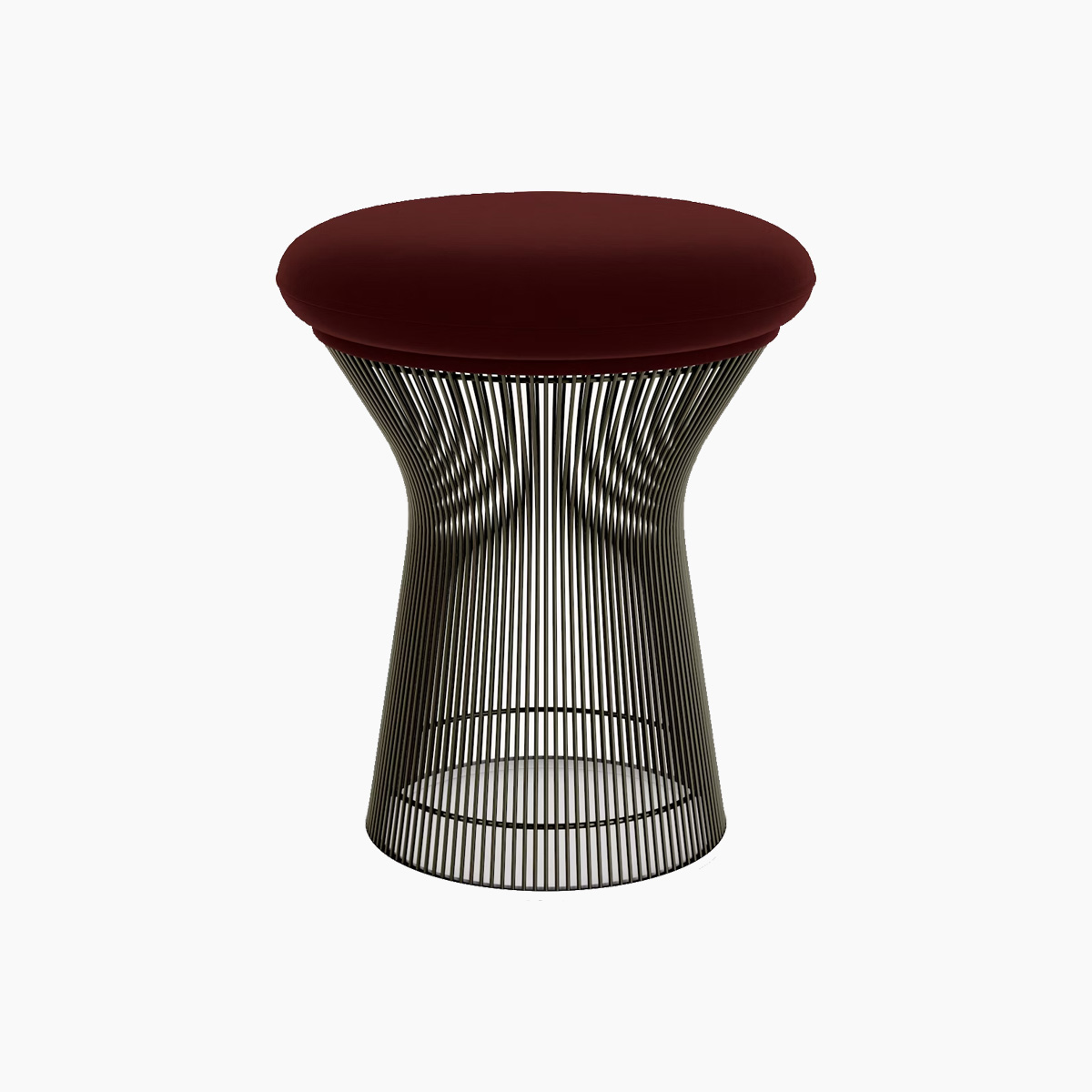 The iconic Platner Stool from Knoll is crafted with meticulously welded, delicate but sturdy steel rods for a radiant accent in offices, lobbies, or lounges. Available in an array of finishes, including 18-karat gold, the airy frame is complemented with a plush cushion in a spectrum of Knoll Textiles fabrics and Spinneybeck leathers.