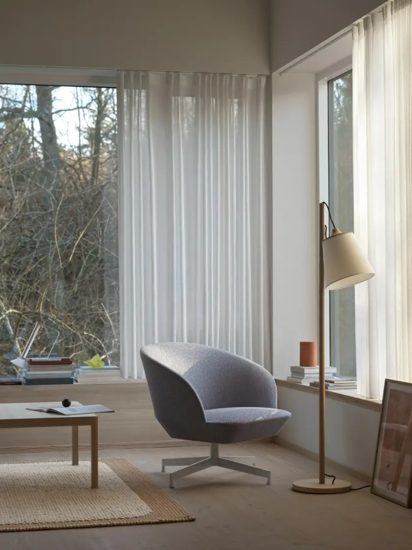 Taking cues from the materiality of Scandinavian design with a playful approach, the Pull Floor Lamp combines the warmth of oak with an adjustable shade, allowing for its direction of light to be altered according to your exact needs.