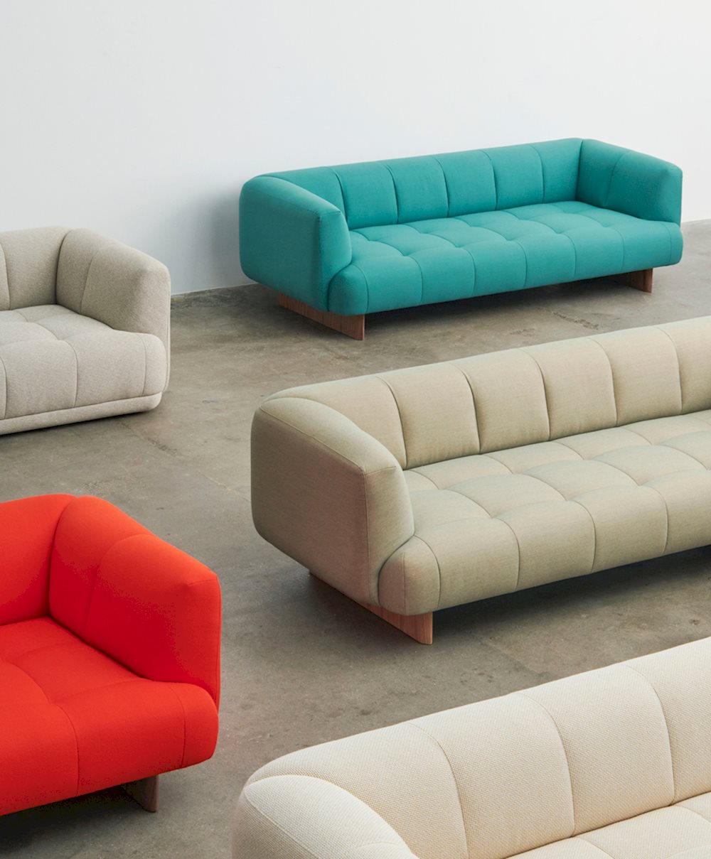 In continuation of HAY’s ongoing design collaboration with Doshi Levien, the multi-functional Quilton Sofa series has been expanded with new family members in the Quilton Lift. The design duo’s ’quilted landscape sofa system’ has retained the distinctive generous dimensions and sculpted forms, with the new variants featuring solid wooden legs, elegantly lifting the sofa to meet the floor with a light, contemporary expression. Available as a two- and three-seater sofa, daybed, and ottoman, the Quilton Lift offers countless seating scenarios.
