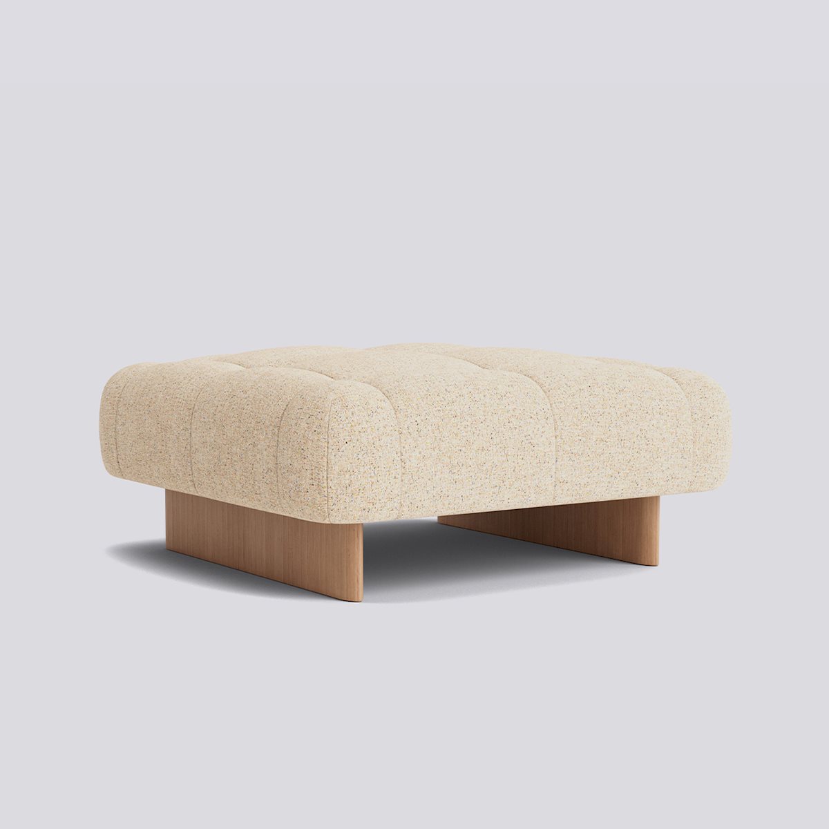 In continuation of HAY’s ongoing design collaboration with Doshi Levien, the multi-functional Quilton Sofa series has been expanded with new family members in the Quilton Lift. The design duo’s ’quilted landscape sofa system’ has retained the distinctive generous dimensions and sculpted forms, with the new variants featuring solid wooden legs, elegantly lifting the sofa to meet the floor with a light, contemporary expression. Available as a two- and three-seater sofa, daybed, and ottoman, the Quilton Lift offers countless seating scenarios.