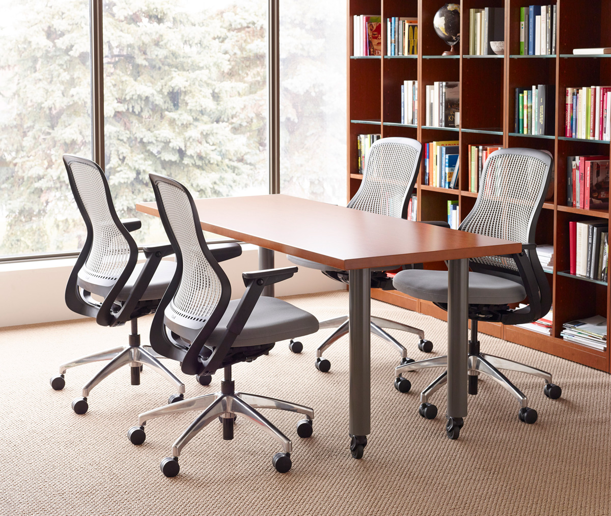 Center column tables deliver a light, mobile solution in individual and shared spaces.