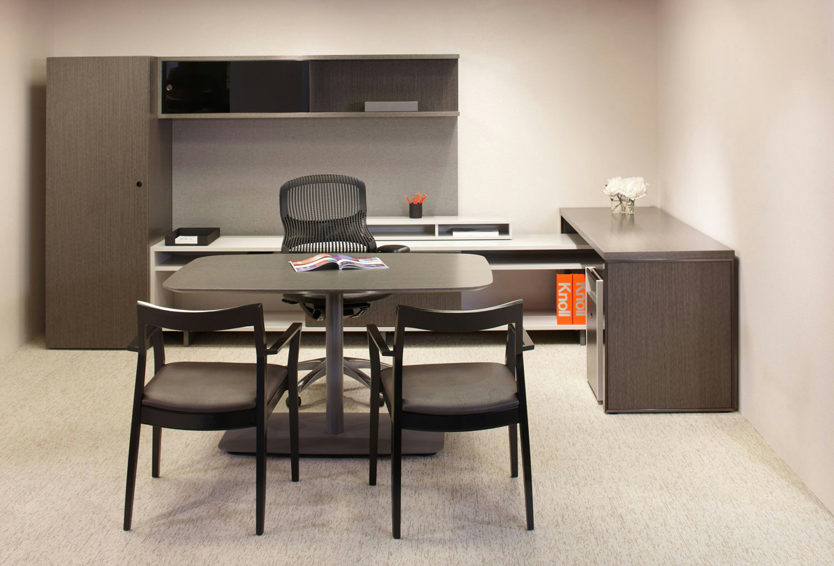 Reff Profiles individual table desks create flexible private offices and workstations. Available in a variety of leg styles, including open frame legs, L-Legs, Reverse L-Legs, and Soft Rectangular Legs, Reff Profiles stand-alone table desks can be positioned and relocated as needs dictate.