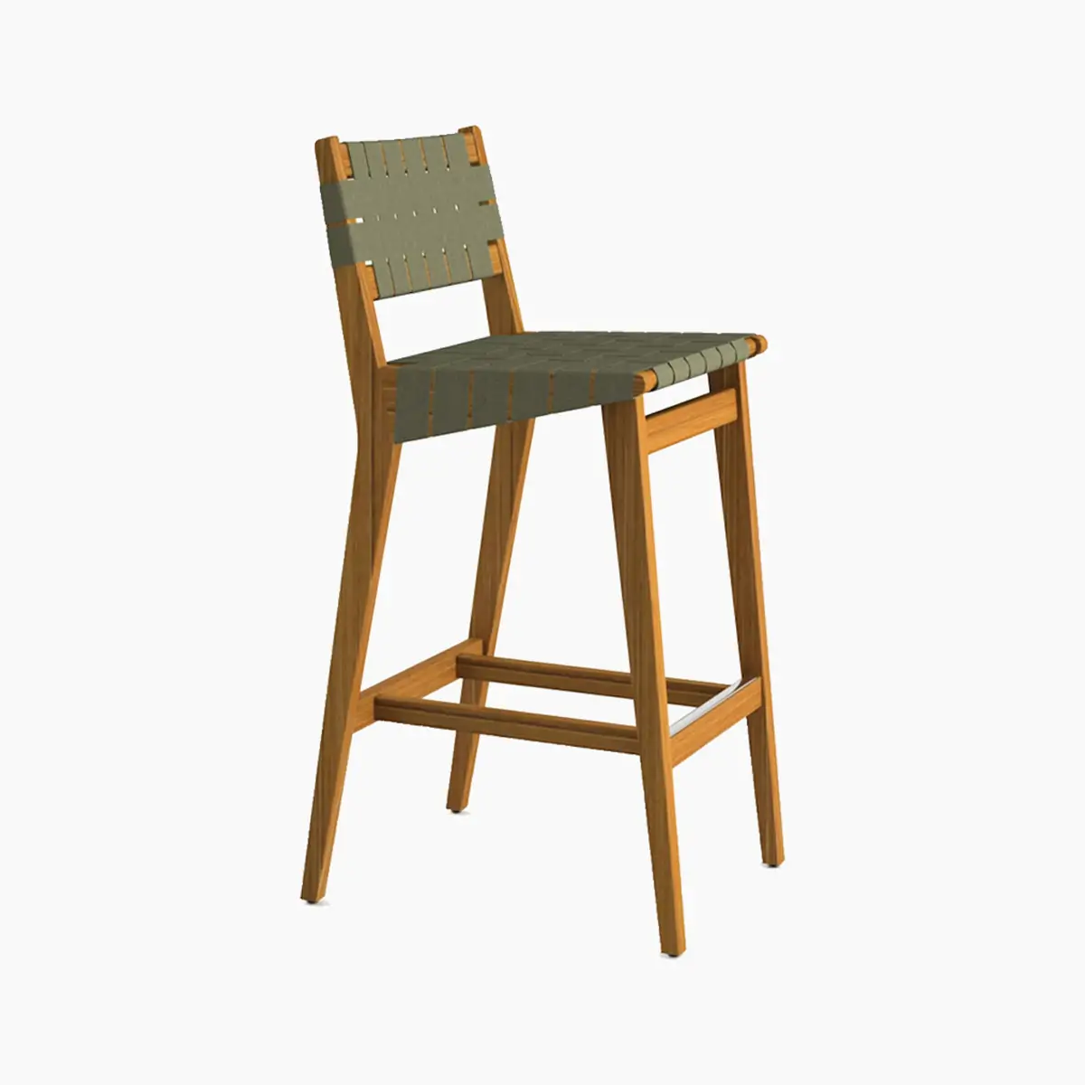 At once timeless and modern, the Risom Outdoor Barstool from Knoll embraces natural beauty. Precision crafted in weather-resistant oiled teak hardwood, this bar-height stool features a durable frame and webbing made of a 100% cotton and Sunbrella® blend that stands up to the elements. Its gentle curves and geometric angles complement the natural materials for a Scandinavian-inspired touch.