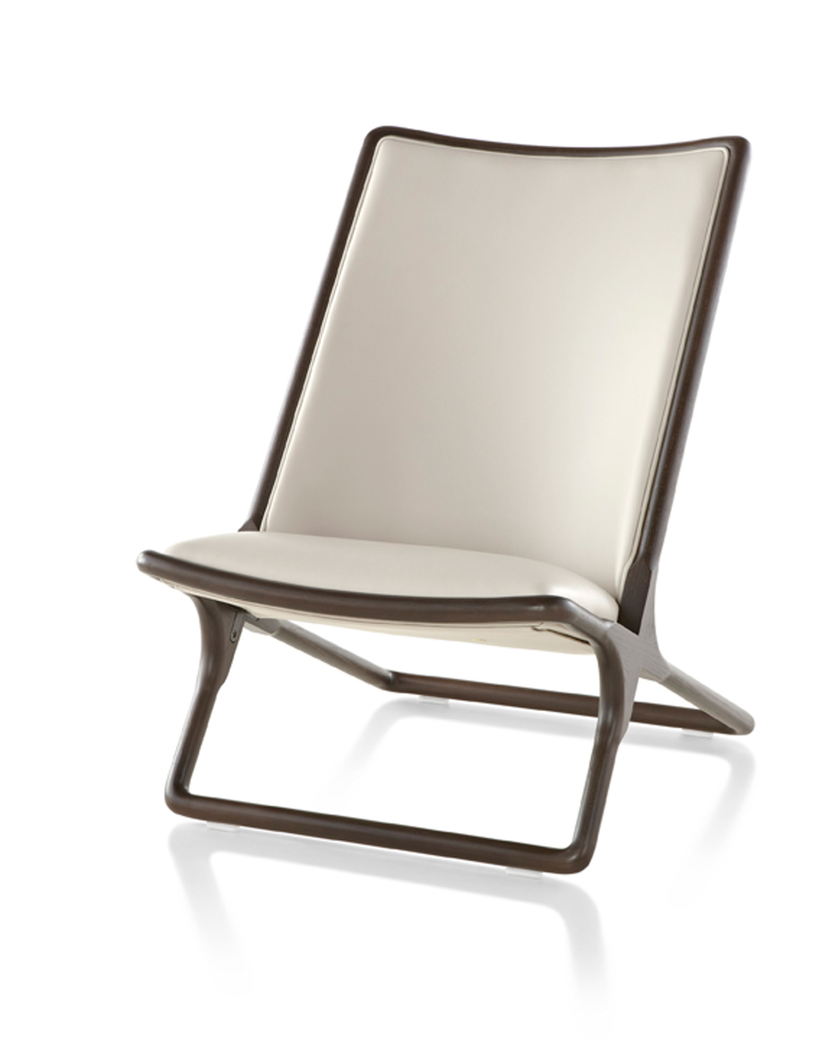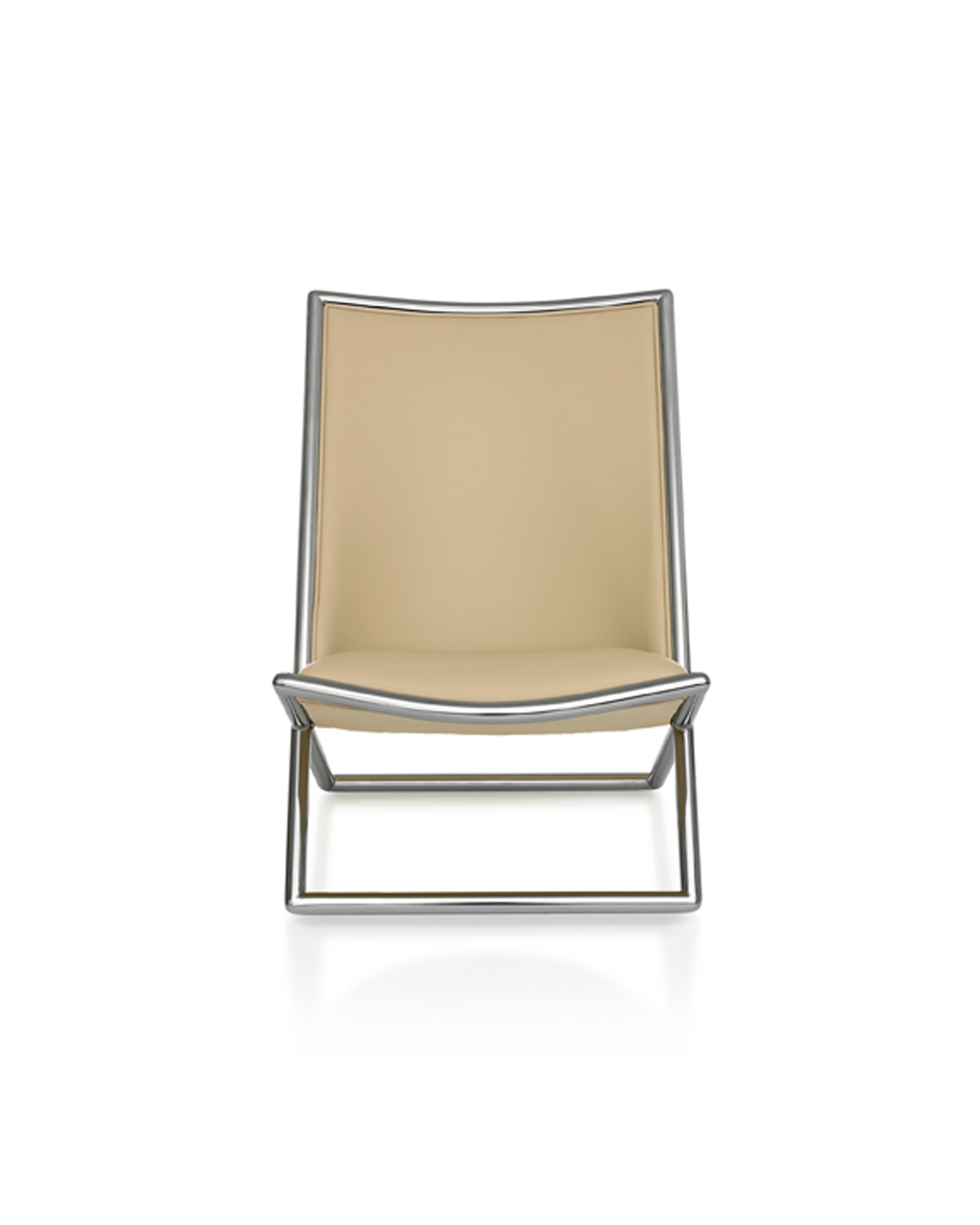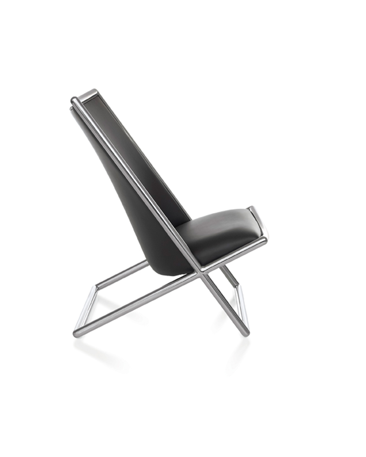 Ward Bennett took inspiration for the Scissor chair from the hammock-style chaise transatlantique of the mid-nineteenth century. An early version of the Scissor appeared in 1964. By 1968, Bennett had refined the design, settling on softened rectangular sections. Scissor is available in a wide array of metal and wood finishes; it can be upholstered in virtually any leather or textile.