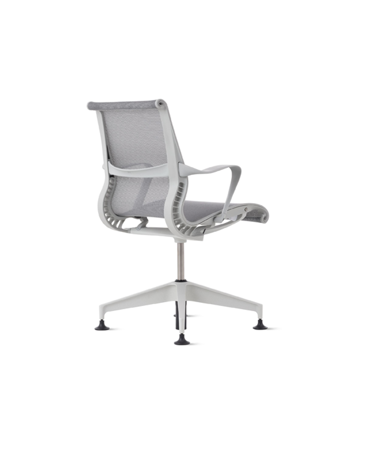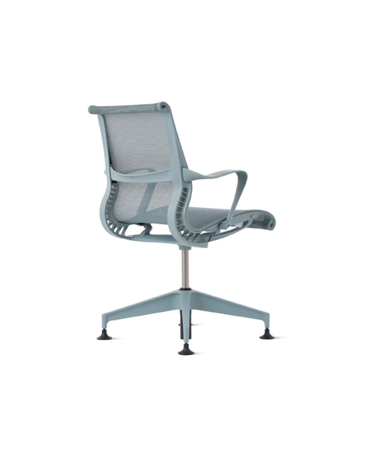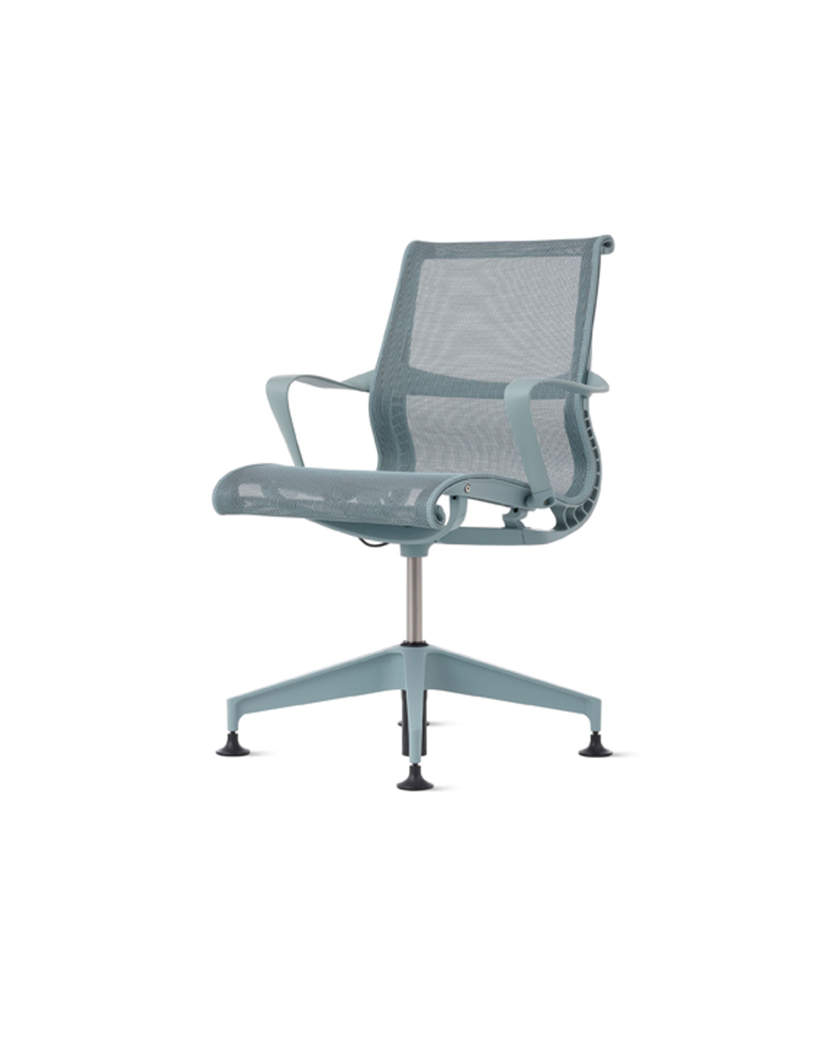 Designed for instant comfort, the Setu Side Chair from Herman Miller features a simple yet hardworking design that’s simultaneously light, airy, and durable. Material innovation is at the core of the Setu—a Kinematic Spine bends and flexes with every movement and a one-piece breathable, pliable seat and back adapts to natural body movements, no adjustments necessary.